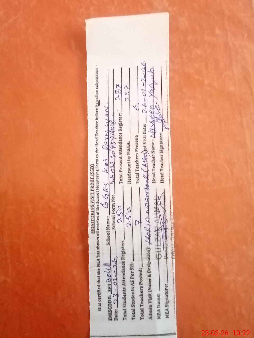 | EMIS Code: 38430411 | Name of School: GGES KOT PEHLWAN | |||