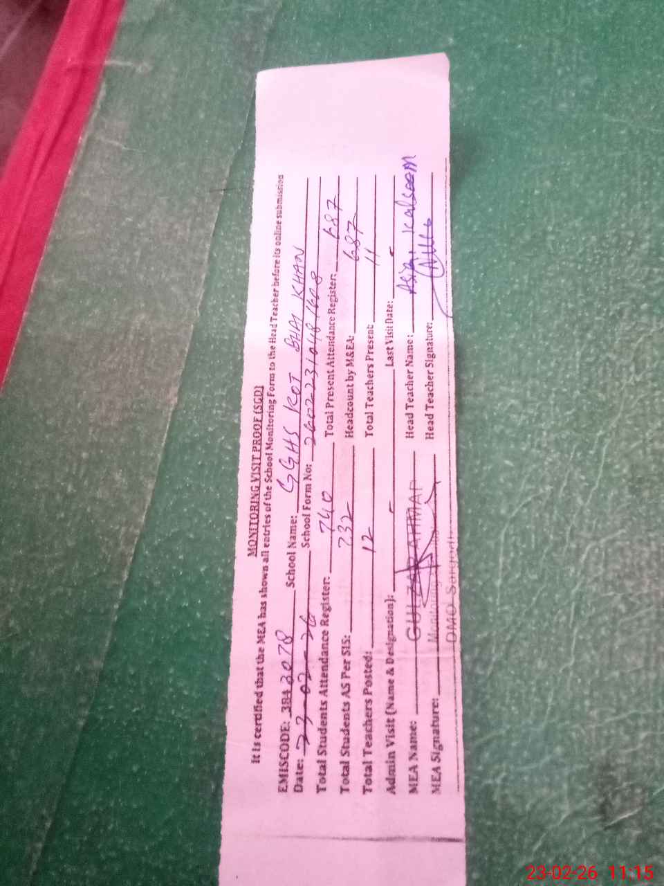 | EMIS Code: 38430078 | Name of School: GGHS KOT BHAI KHAN | |||