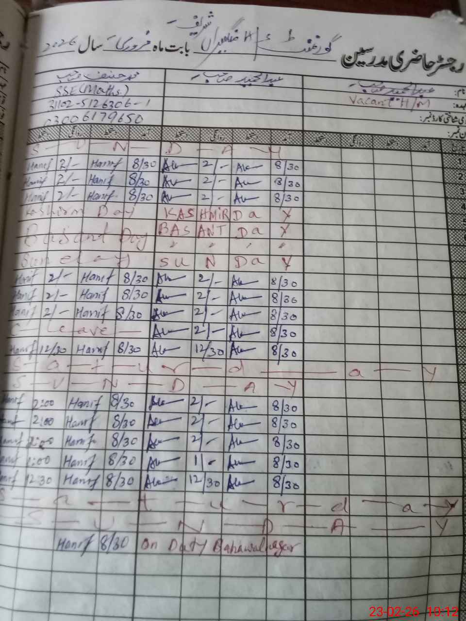 | Name: Ab**** Ha**** Designation: (School Headmaster's/Headmistress's) HEAD MASTER Phone/Cell Number: 03**** |