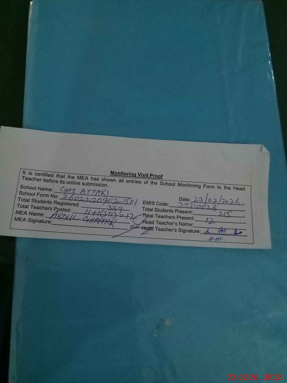 | EMIS Code: 39310028 | Name of School: GHS ATTARI | |||