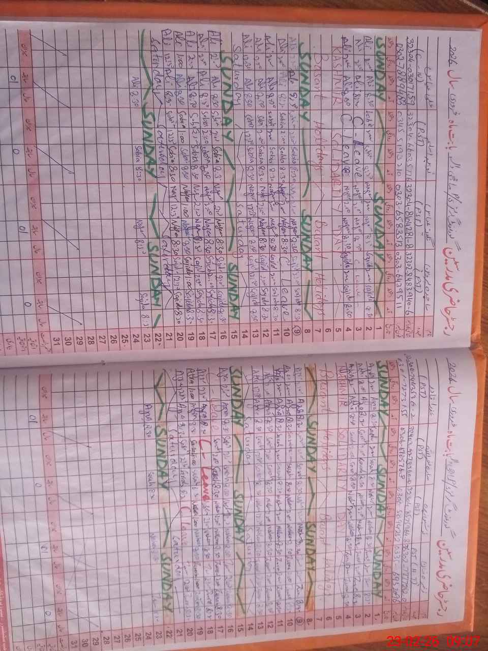 | Leave | Duty | Absent | Maternity | Medical | Ex- Pak |