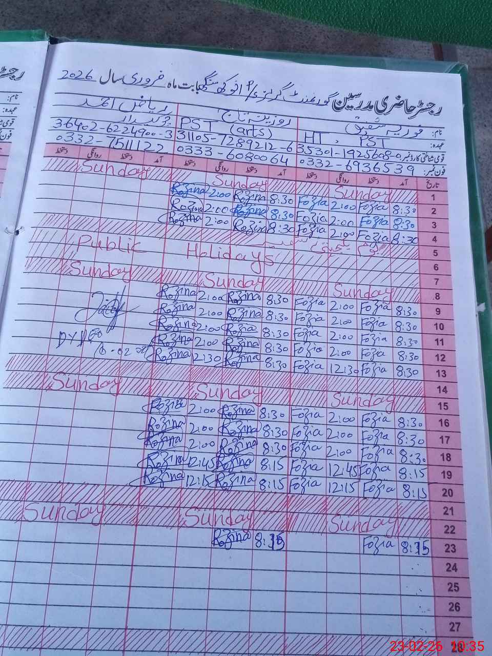 | Name: Fo**** Sh**** Designation: (School Headmaster's/Headmistress's) PST Phone/Cell Number: 03**** |