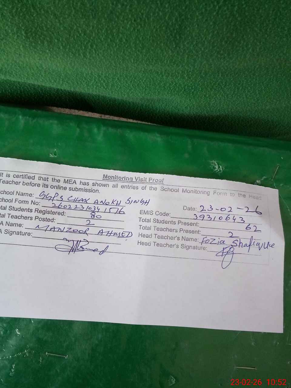 | EMIS Code: 39310643 | Name of School: GGPS CHAK ANOKH SINGH | |||