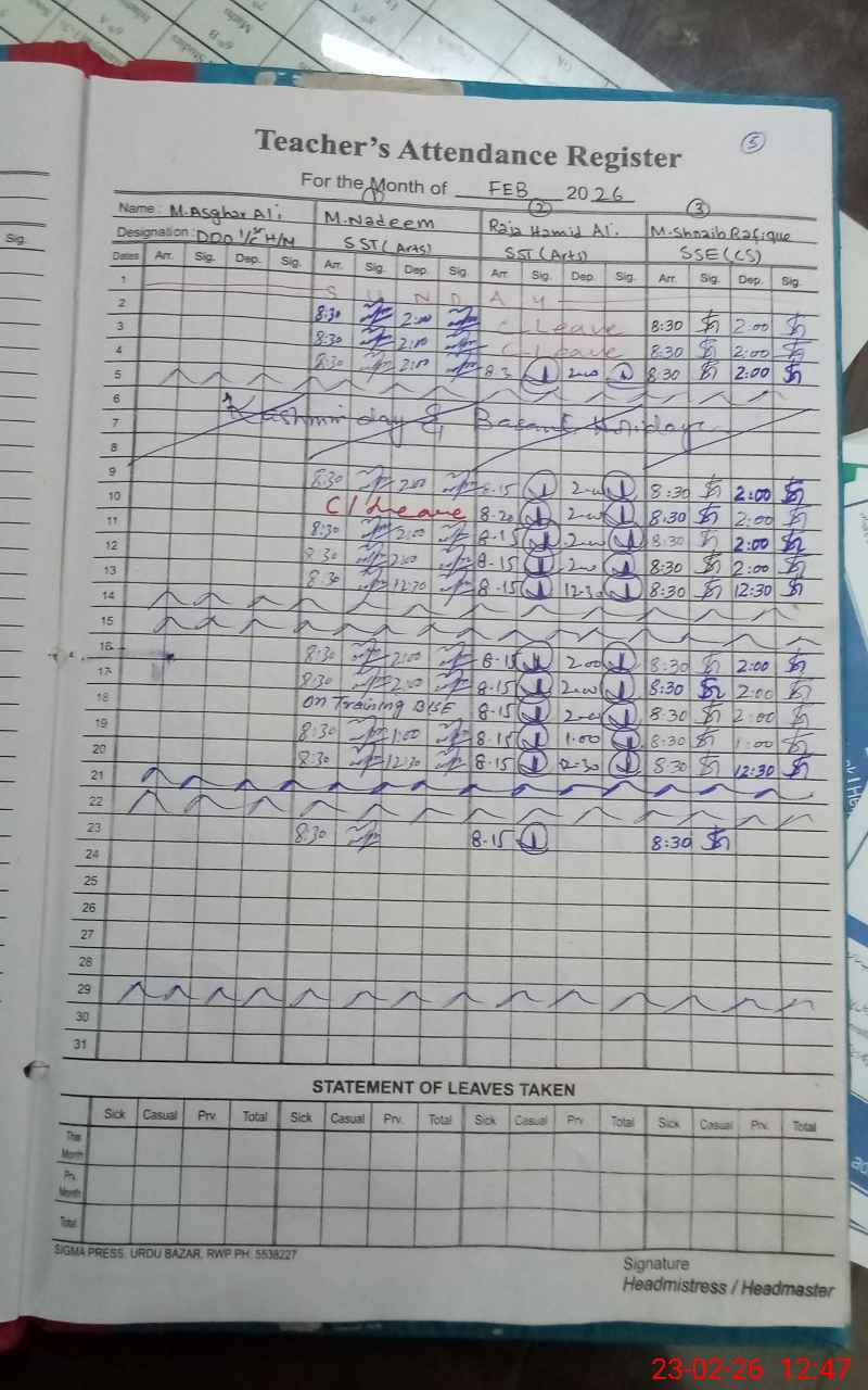 | District: RAWALPINDI | Tehsil: TAXILA | Markaz: SECONDARY-WING | Level: H.Sec. | |