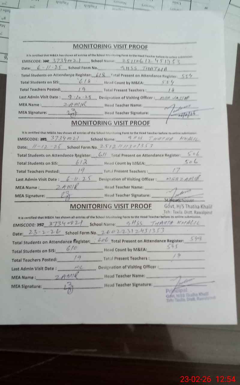 | EMIS Code: 37340021 | Name of School: GHSS THATHA KHALIL | |||