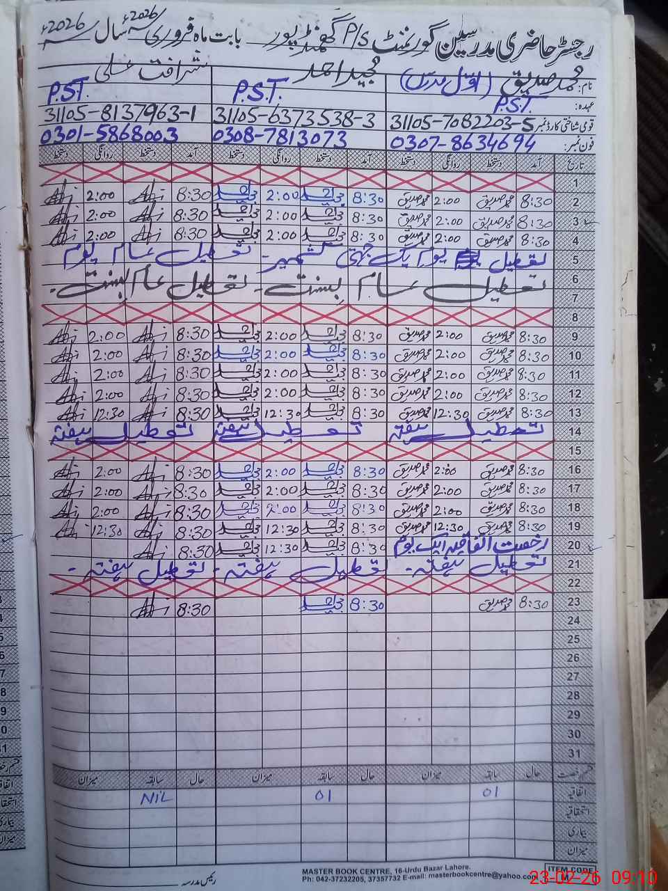 | Name: MU**** Sa**** Designation: (School Headmaster's/Headmistress's) PST Phone/Cell Number: 03**** |