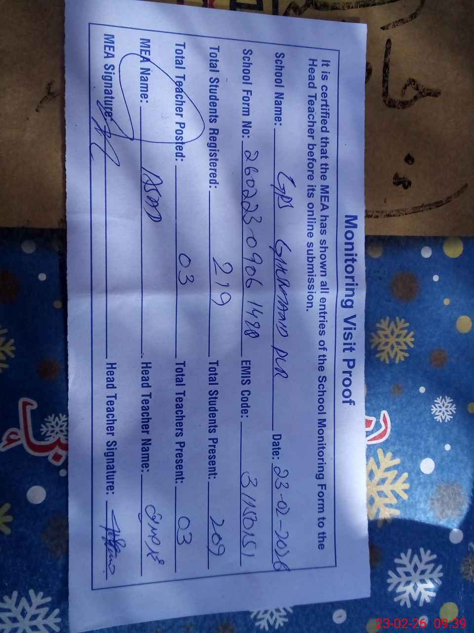 | EMIS Code: 31150151 | Name of School: GPS GHAMANDPUR | |||