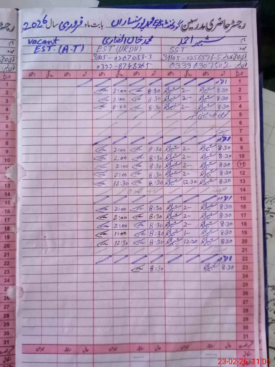 | Name: SH**** AH**** Designation: (School Headmaster's/Headmistress's) SST (G) Phone/Cell Number: 03**** |