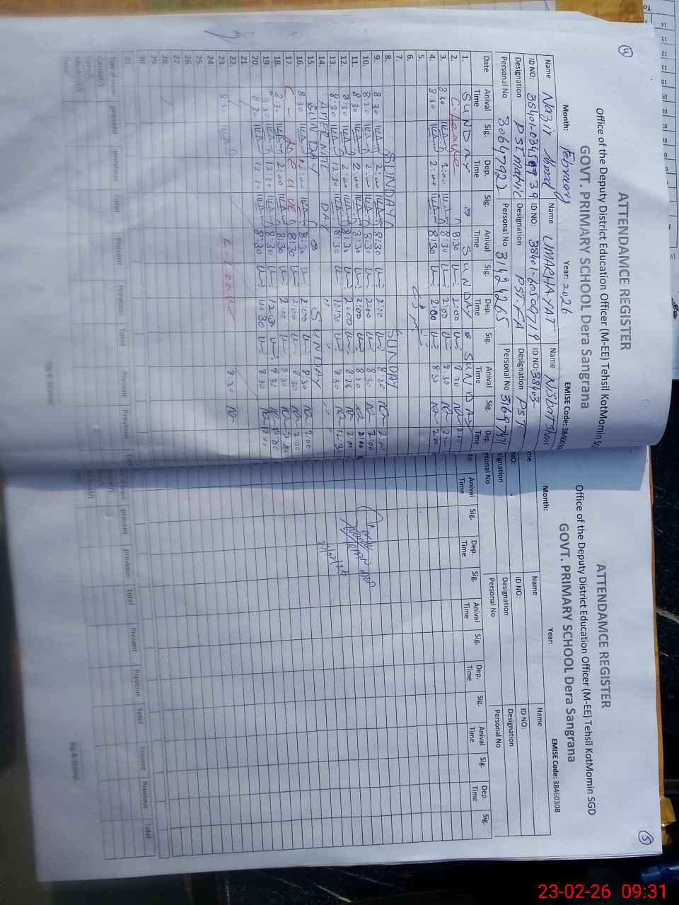 | Name: Sh**** UlHa**** Designation: (School Headmaster's/Headmistress's) PST Phone/Cell Number: 03**** |
