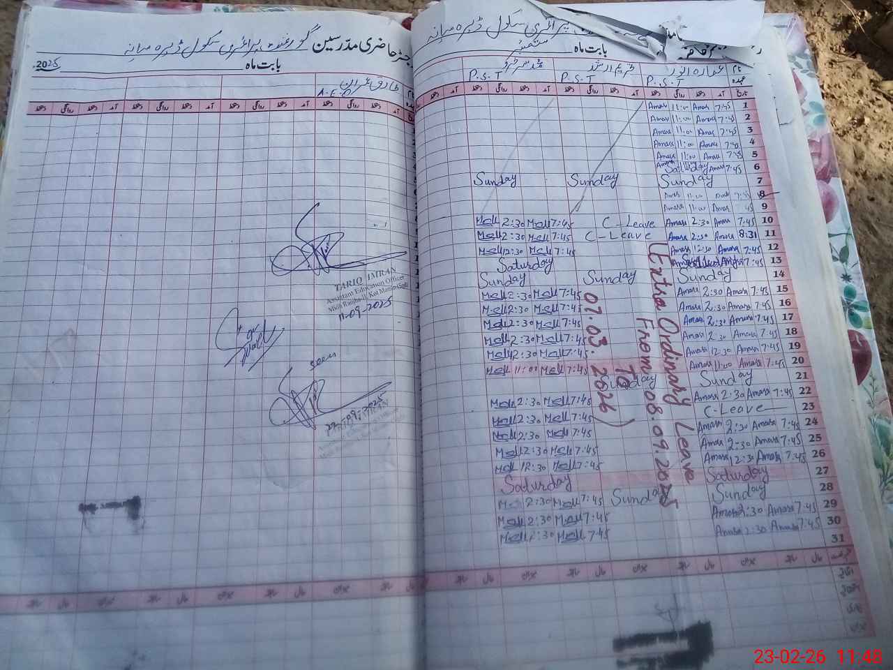 | Name: TA**** AR**** Designation: (School Headmaster's/Headmistress's) PST Phone/Cell Number: 03**** |