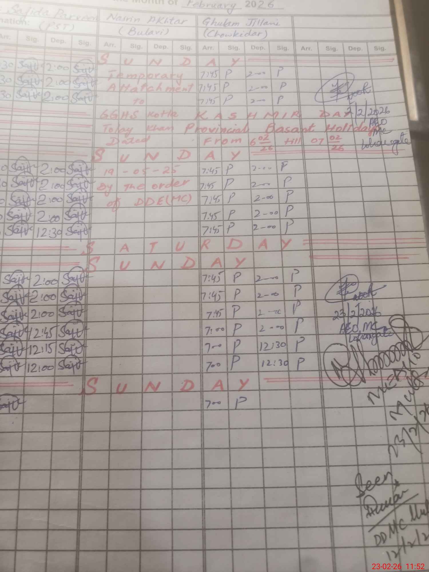| Monitoring Date: 23-02-2026 | Start Time: 23-02-2026 11:38 AM | End Time: 23-02-2026 11:54 AM | Name of MEA: Ma**** Kh**** Pa**** | |