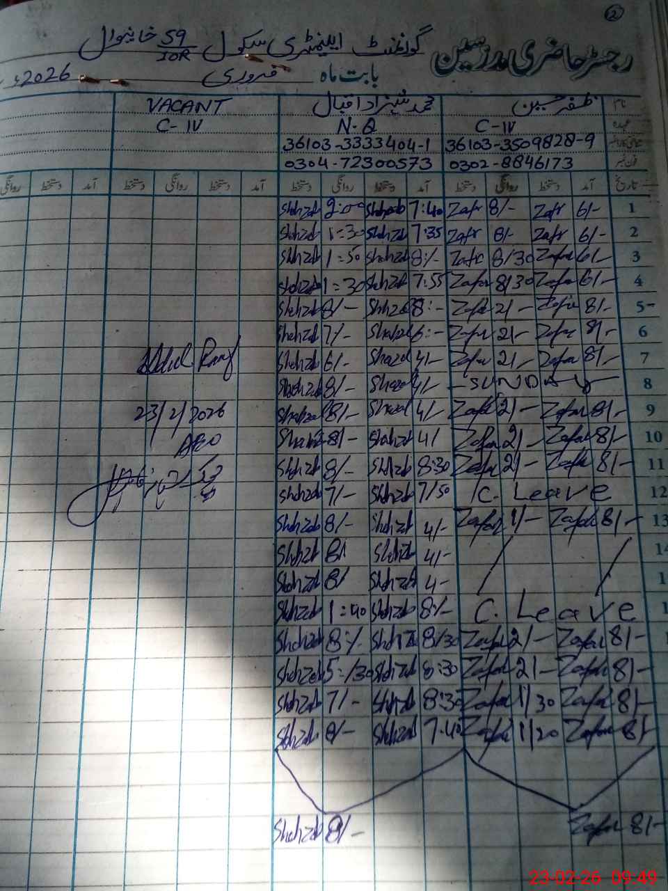 | Name: Kh**** Mu**** An**** Designation: (School Headmaster's/Headmistress's) SST Phone/Cell Number: 03**** |