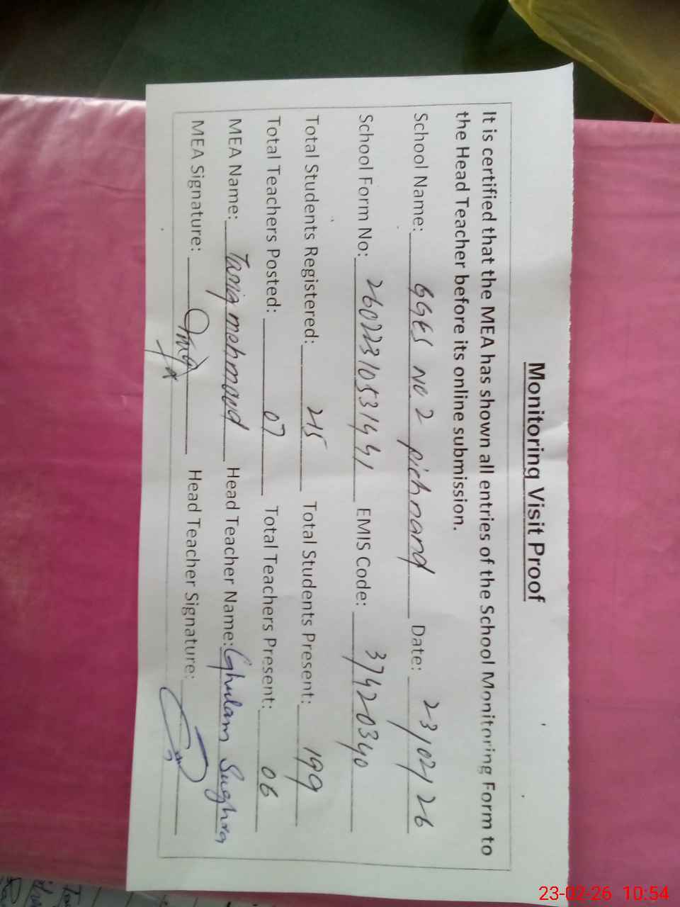 | Certified that this School was Inspected by the Undersigned MEA/DMO Today and the Information Stated Above is as Per Record. | |||||