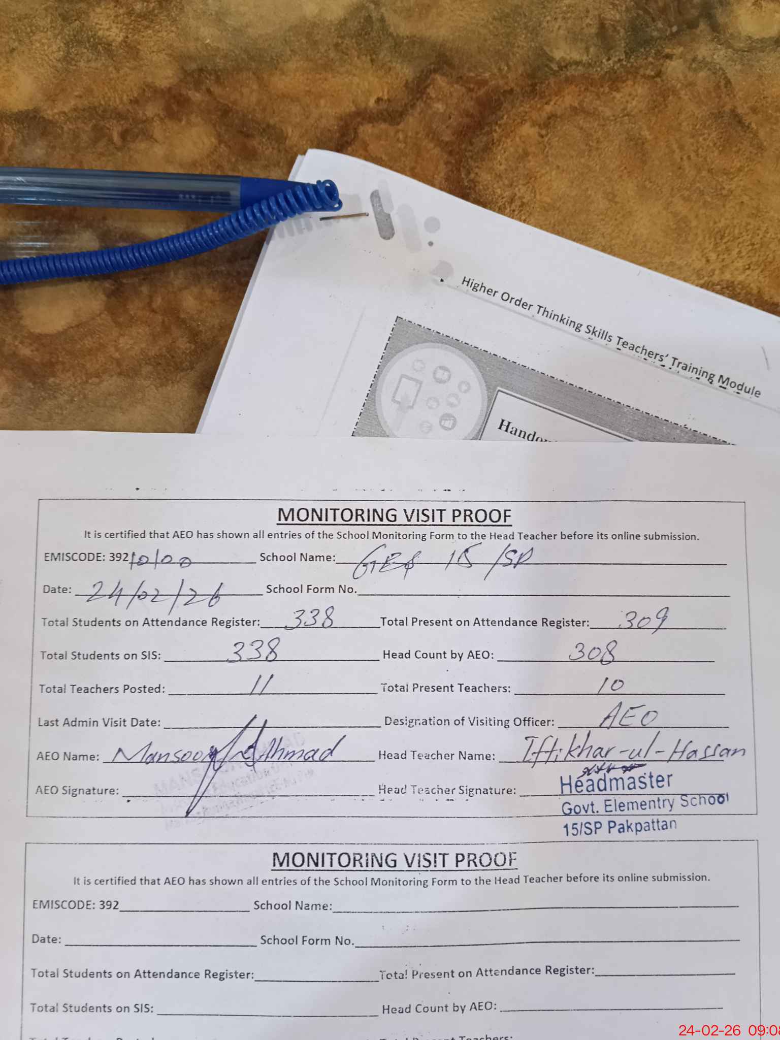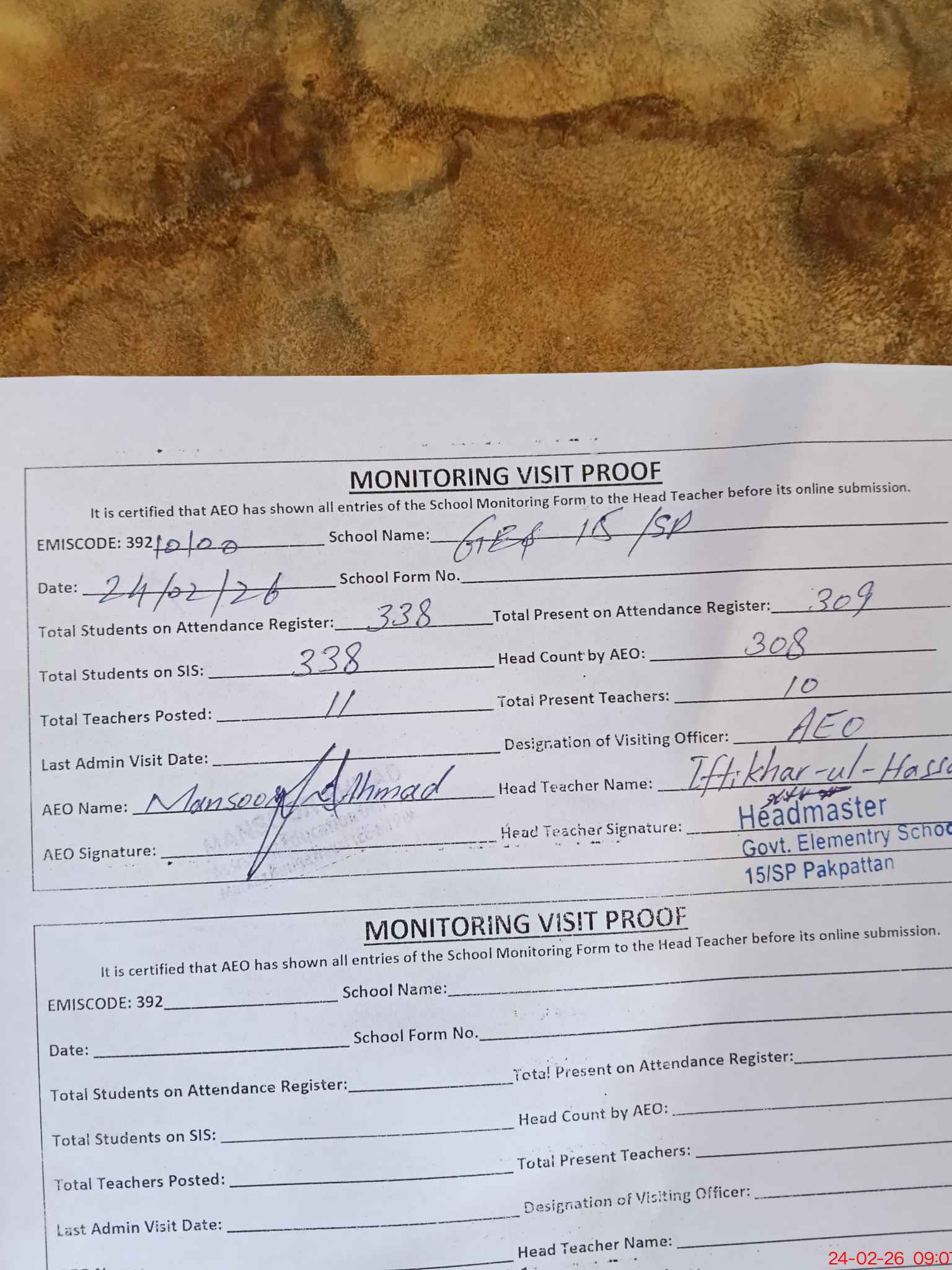 | EMIS Code: 39210100 | Name of School: GES 15/SP P.O PAKPATTAN | |||