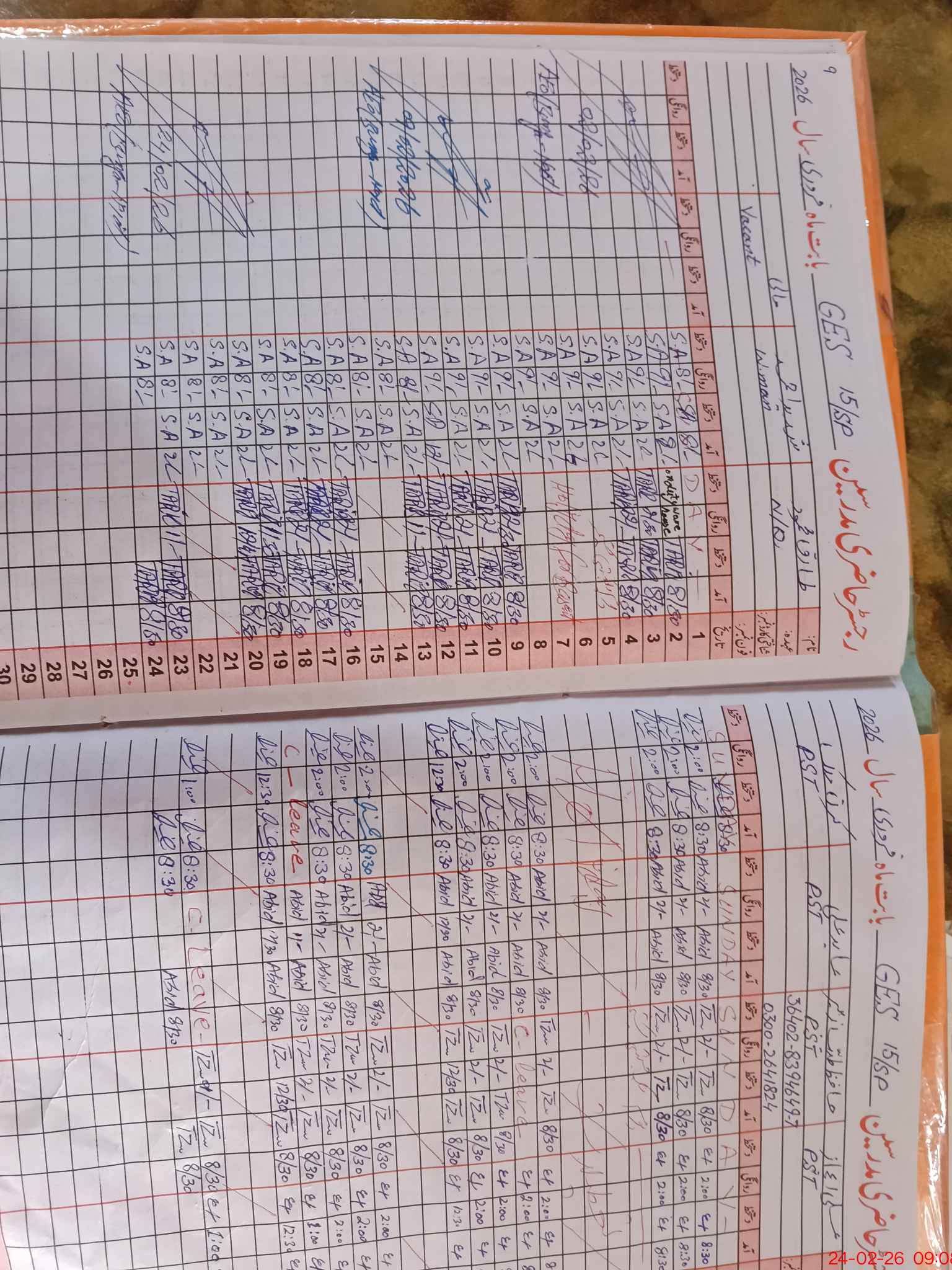 | Leave | Duty | Absent | Maternity | Medical | Ex- Pak |