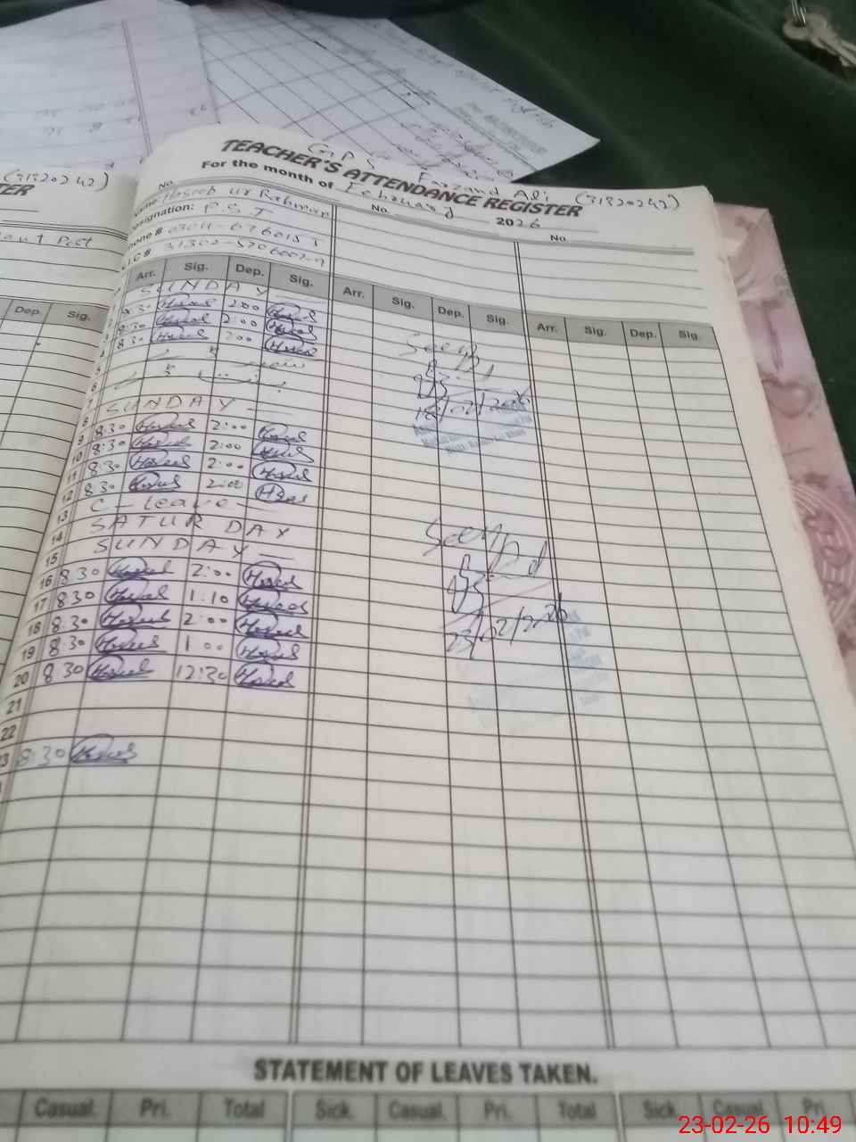 | CNIC | Full Name | Designation | R/C | Absence During Last Calender Month |