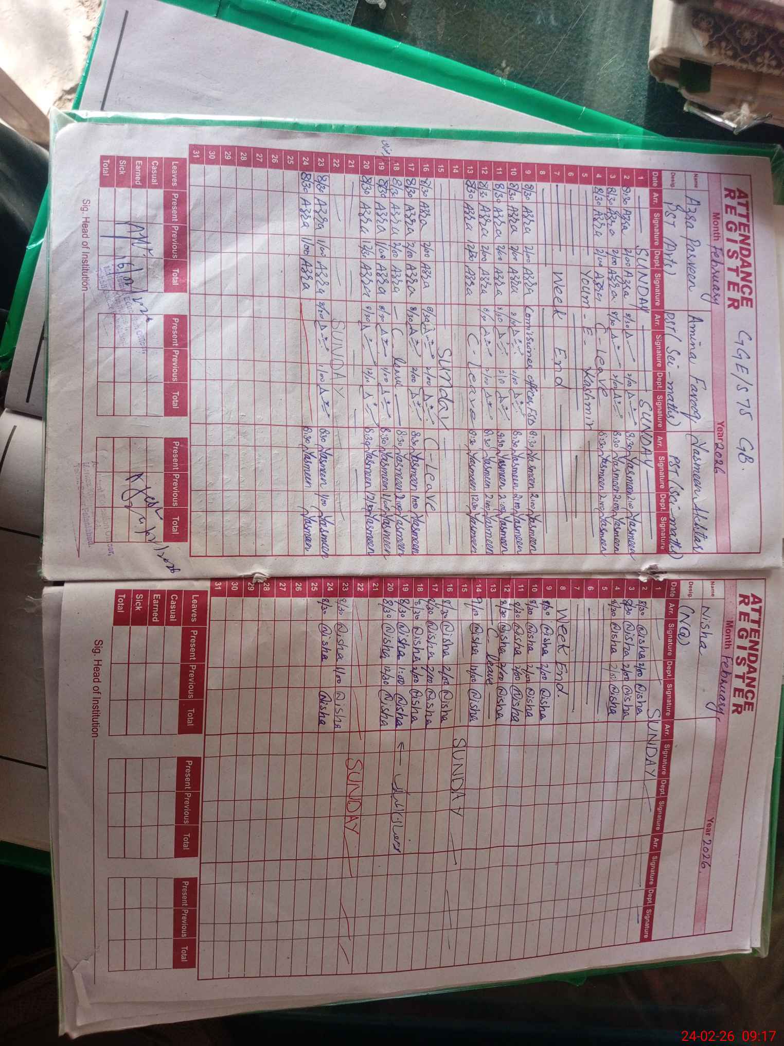 | 33**** | Am**** Fa**** | ESE Science | Contract | 0 | 0 | 0 | 0 | 0 | 0 | 0 | 0 | 0 | Absent (Un-Authorized) |