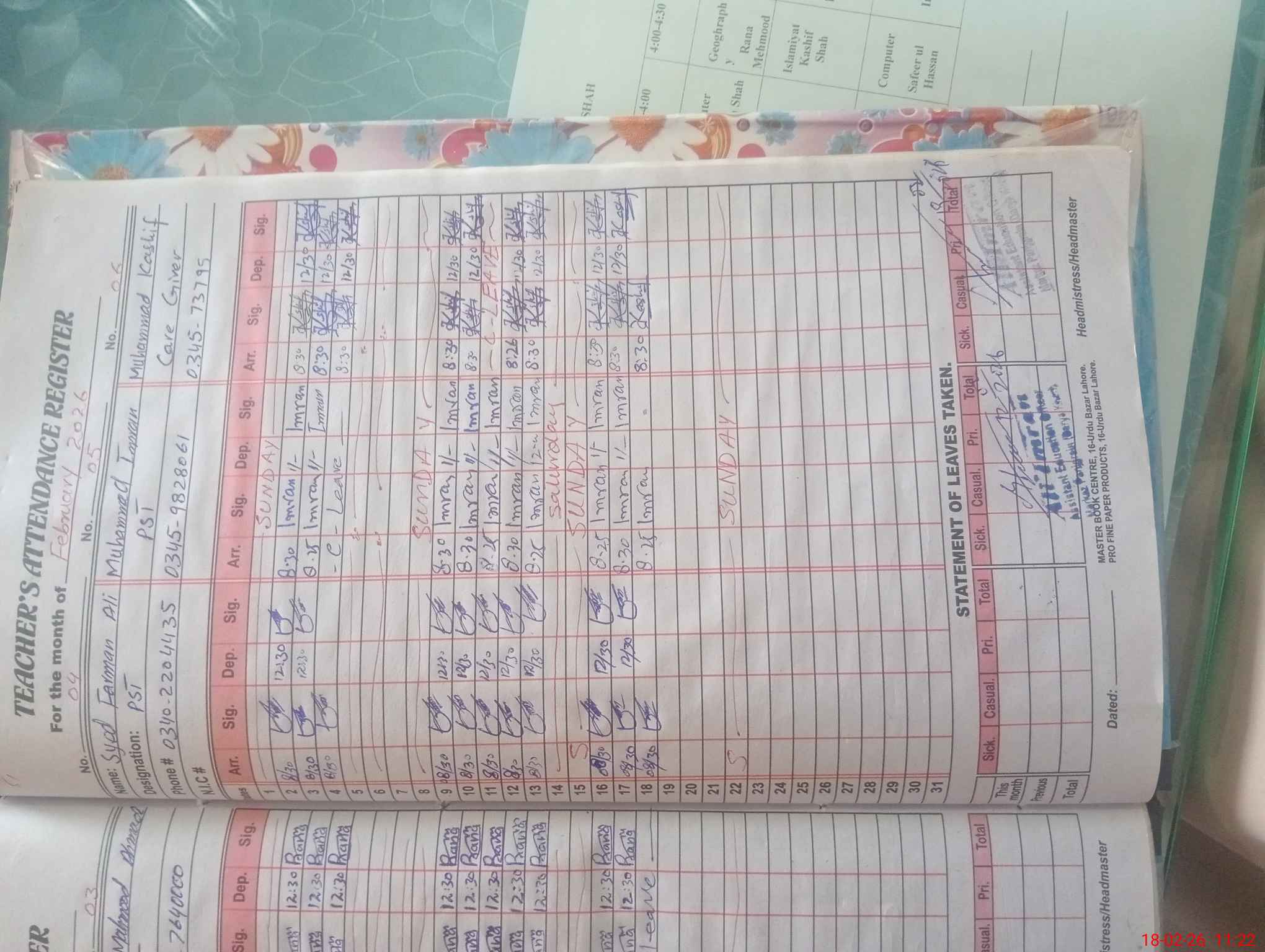 | Name: Sy**** Sa**** UlHa**** Designation: (School Headmaster's/Headmistress's) PST HEAD Phone/Cell Number: 03**** |