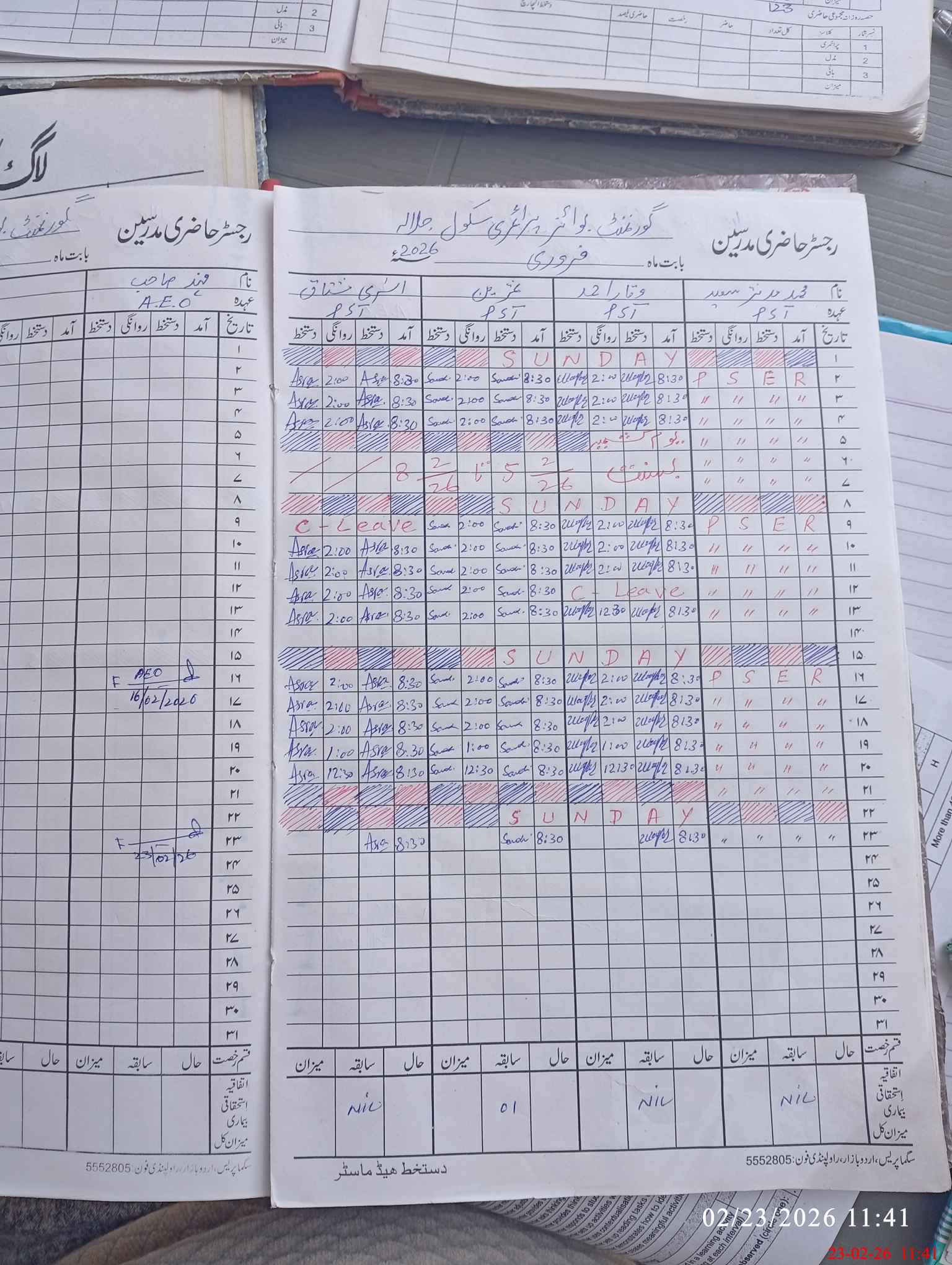 | CNIC | Full Name | Designation | R/C | Absence During Last Calender Month |
