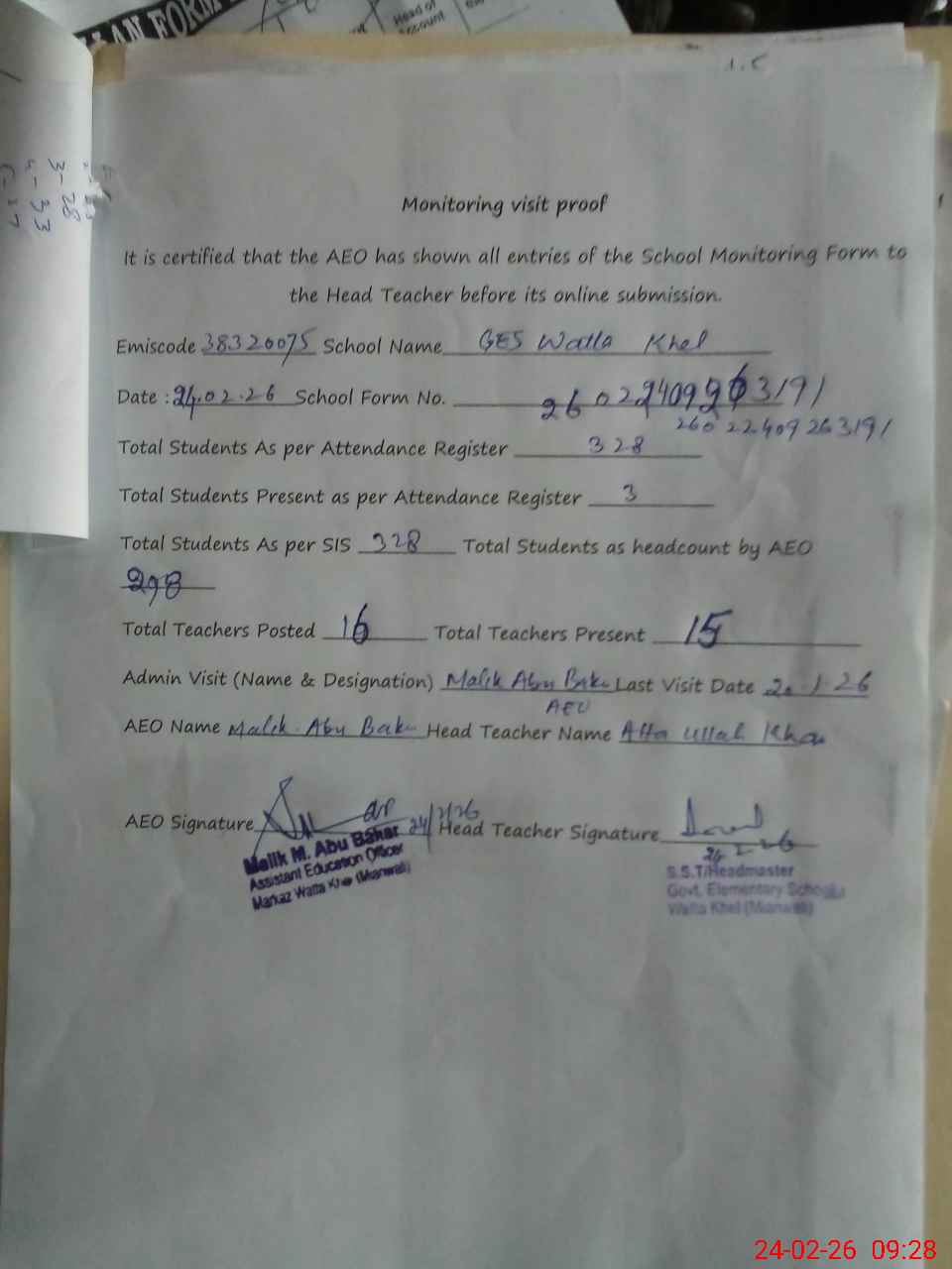 | EMIS Code: 38320075 | Name of School: GES WATTA KHEL | |||