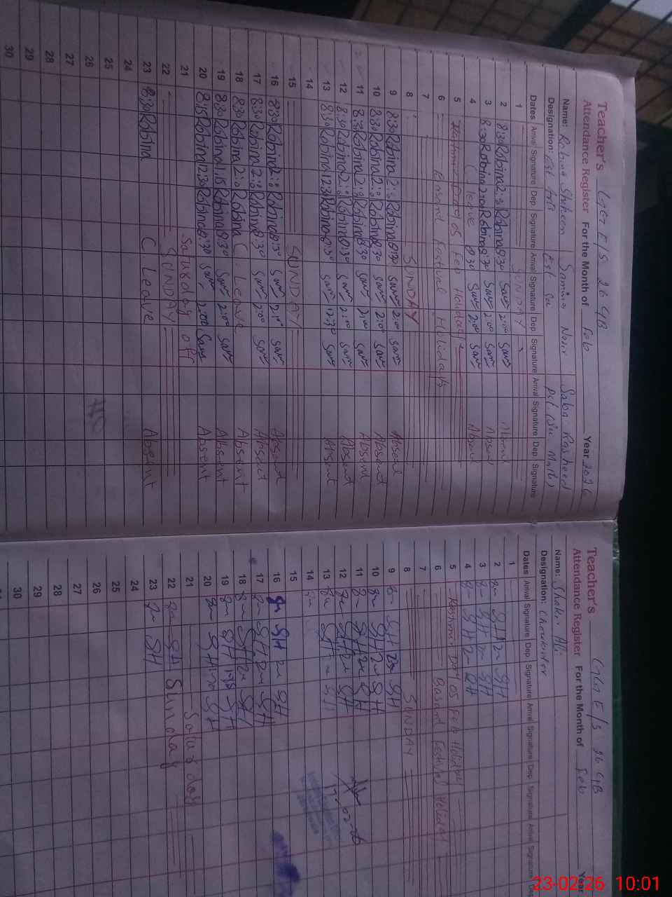 | 33**** | Sa**** Ra**** | PST Science/Maths | Regular | 0 | 0 | 0 | 0 | 0 | 0 | 0 | 0 | 0 | Absent (Un-Authorized) |