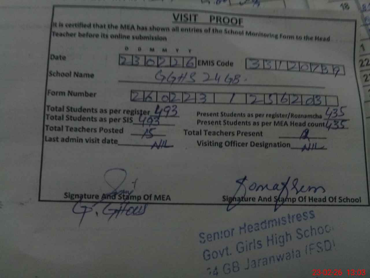 | EMIS Code: 33120739 | Name of School: GGHS CHAK 24 GB | |||