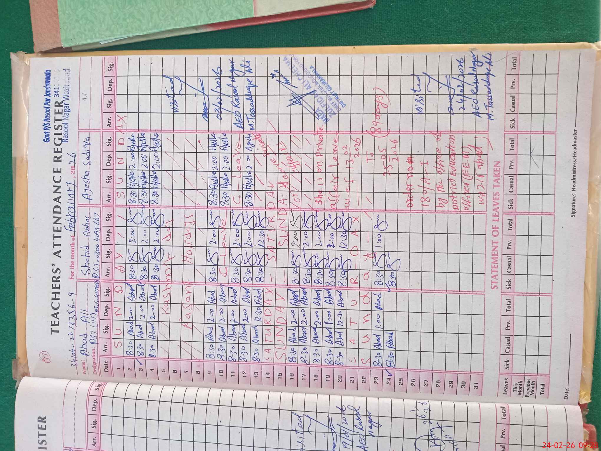 | Name: Ab**** Designation: (School Headmaster's/Headmistress's) Head Teacher Phone/Cell Number: 03**** |
