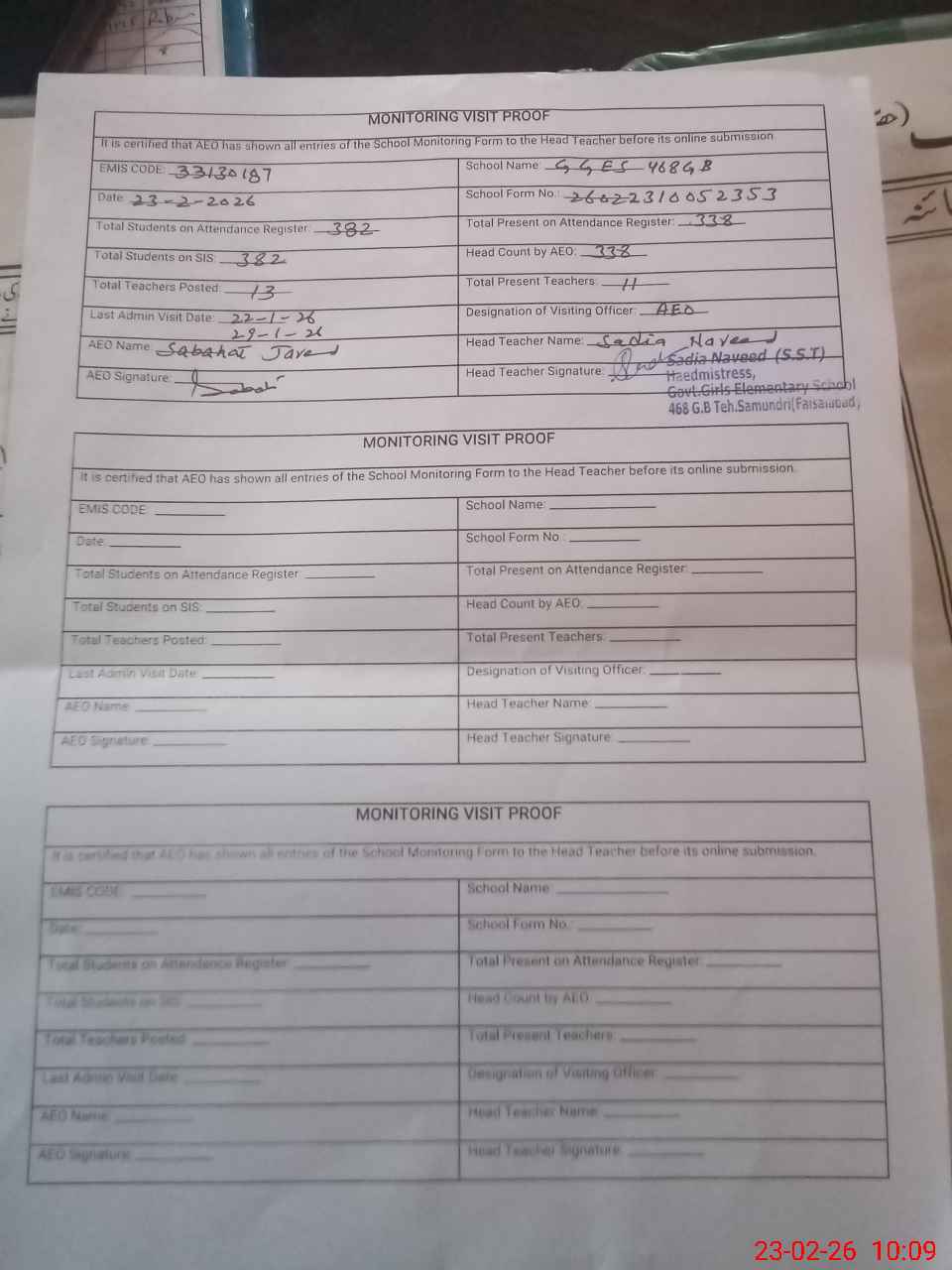 | EMIS Code: 33130187 | Name of School: GGES CHAK 468 GB SAMUNDRI | |||
