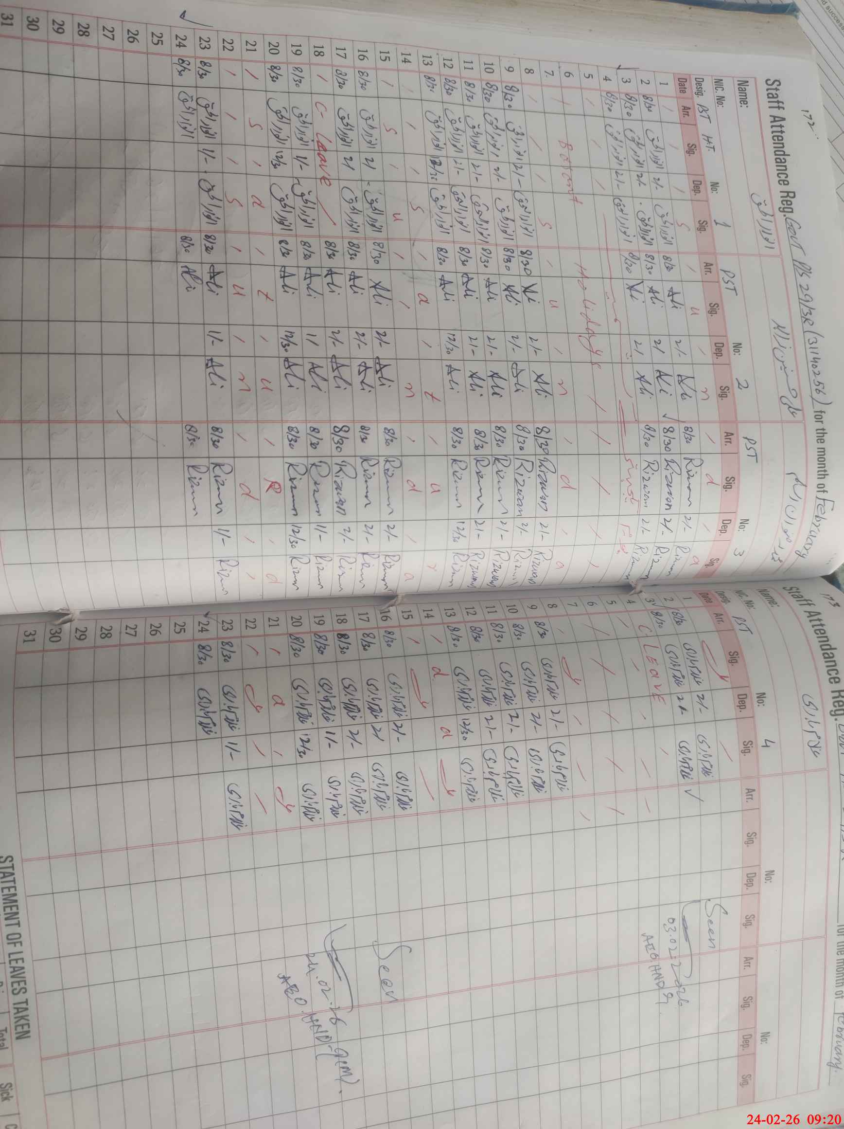 | CNIC | Full Name | Designation | R/C | Absence During Last Calender Month |