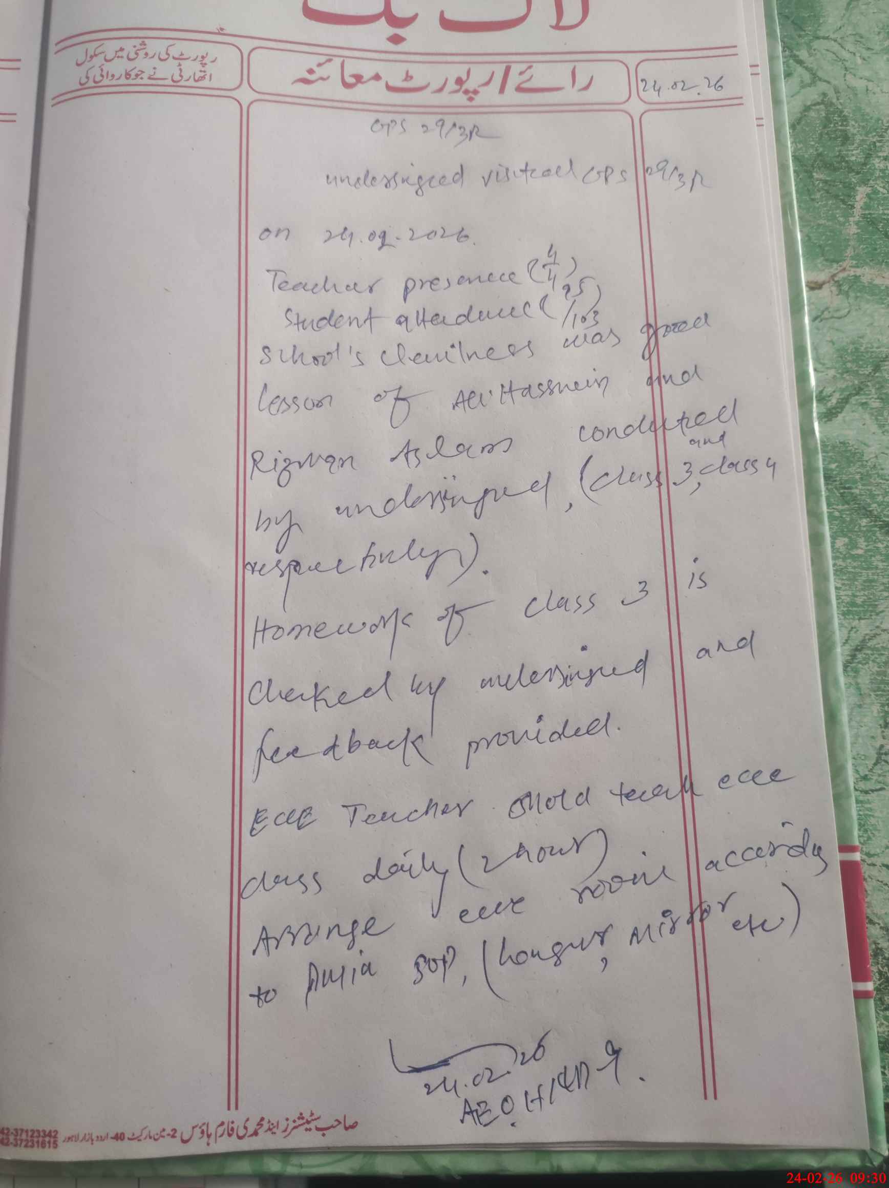 | Attendance Register | Head Teacher | MEA with School | Visit Proof |