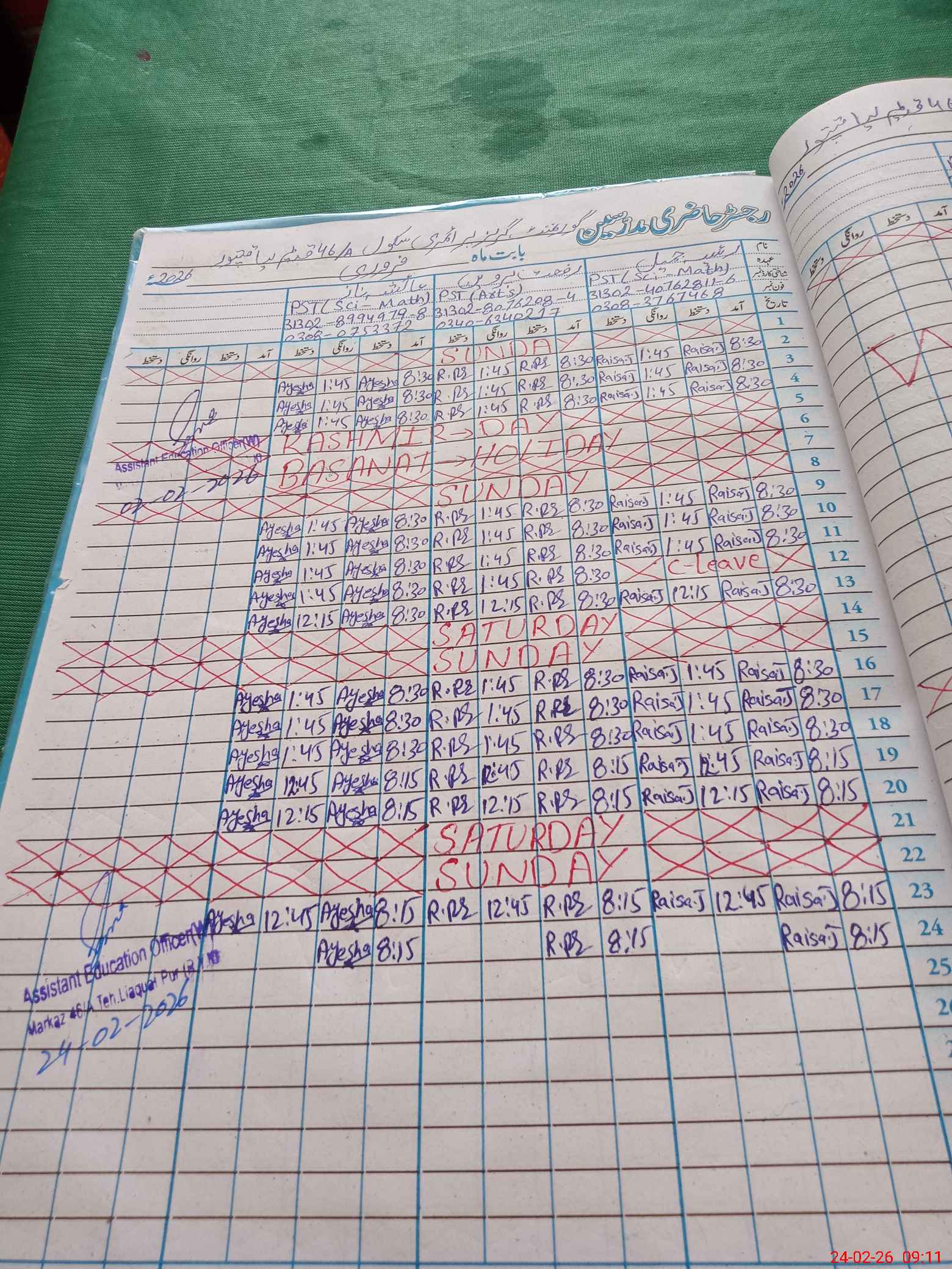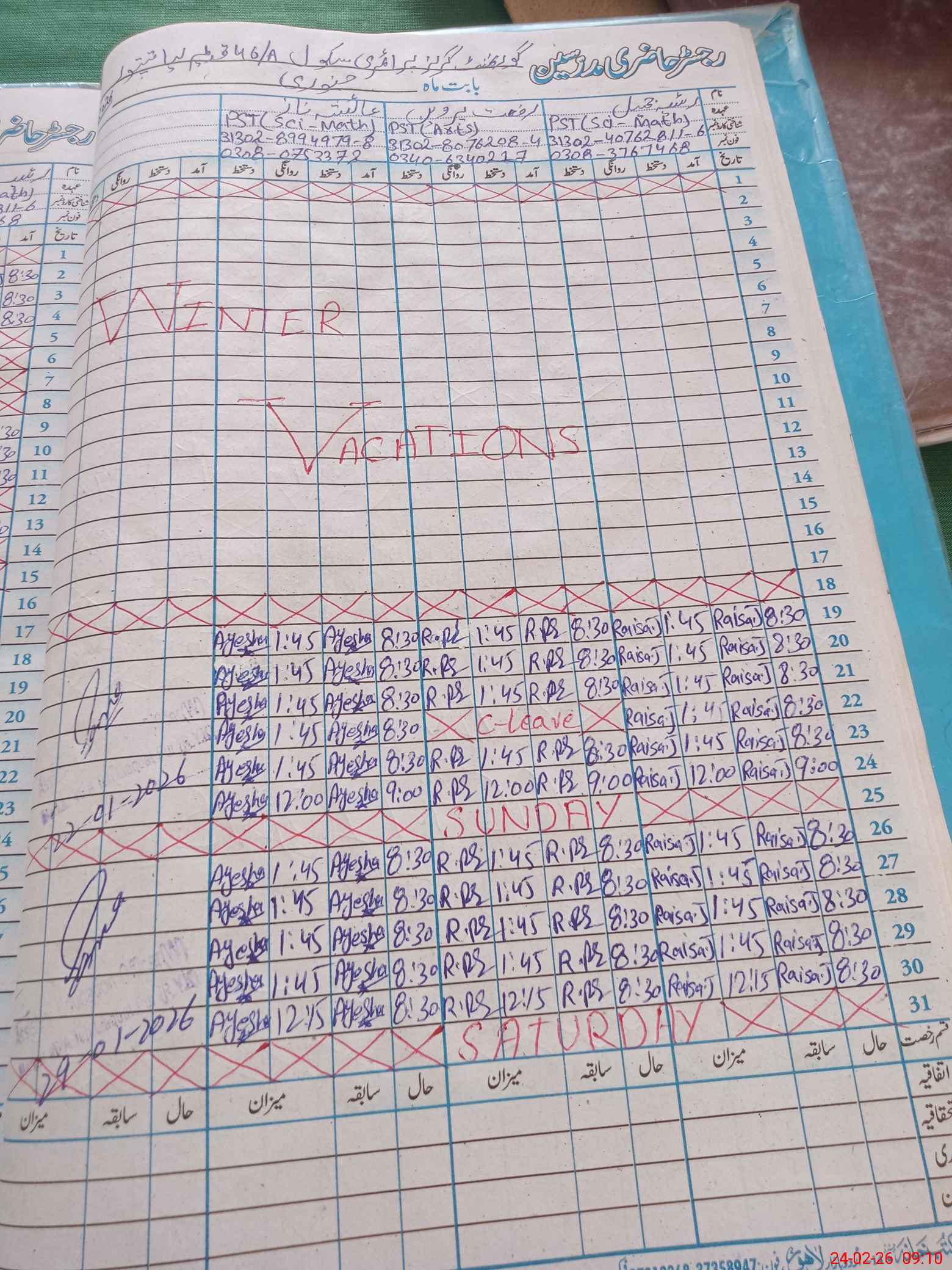 | Name: RA**** JA**** Designation: (School Headmaster's/Headmistress's) PST/PTC/JV Phone/Cell Number: 03**** |