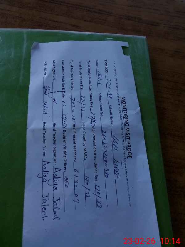 | Certified that this School was Inspected by the Undersigned MEA/DMO Today and the Information Stated Above is as Per Record. | |||||