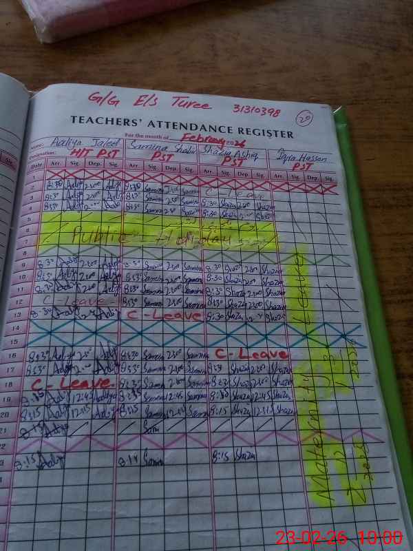 | Attendance Register | Head Teacher | MEA with School | Visit Proof |