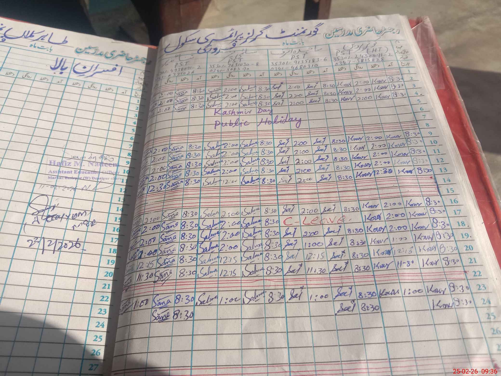 | Name: KO**** PE**** Designation: (School Headmaster's/Headmistress's) PST Phone/Cell Number: 03**** |