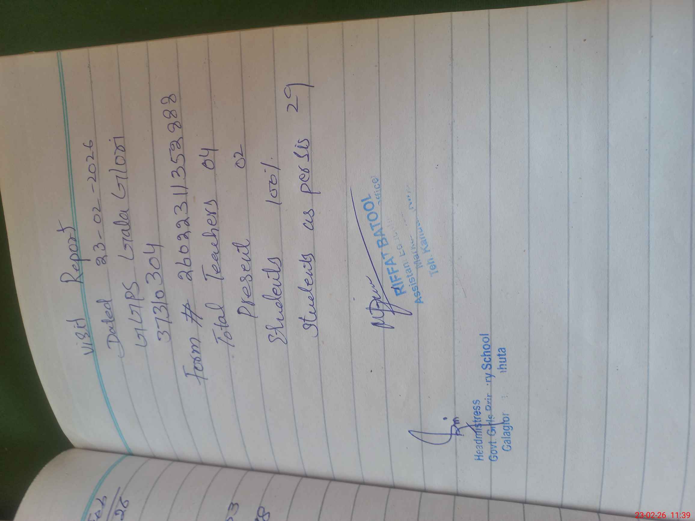 | Attendance Register | Head Teacher | MEA with School | Visit Proof |