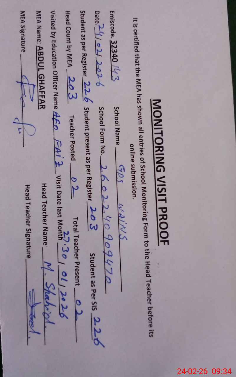 | EMIS Code: 32340143 | Name of School: GPS WAINS | |||
