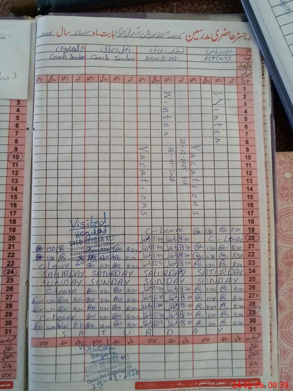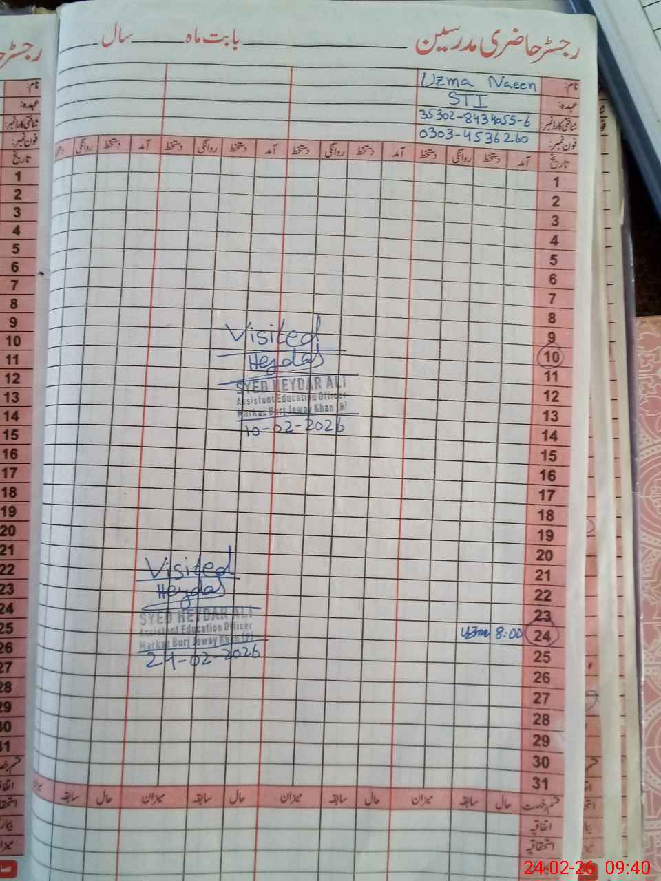 | Attendance Register | Head Teacher | MEA with School | Visit Proof |