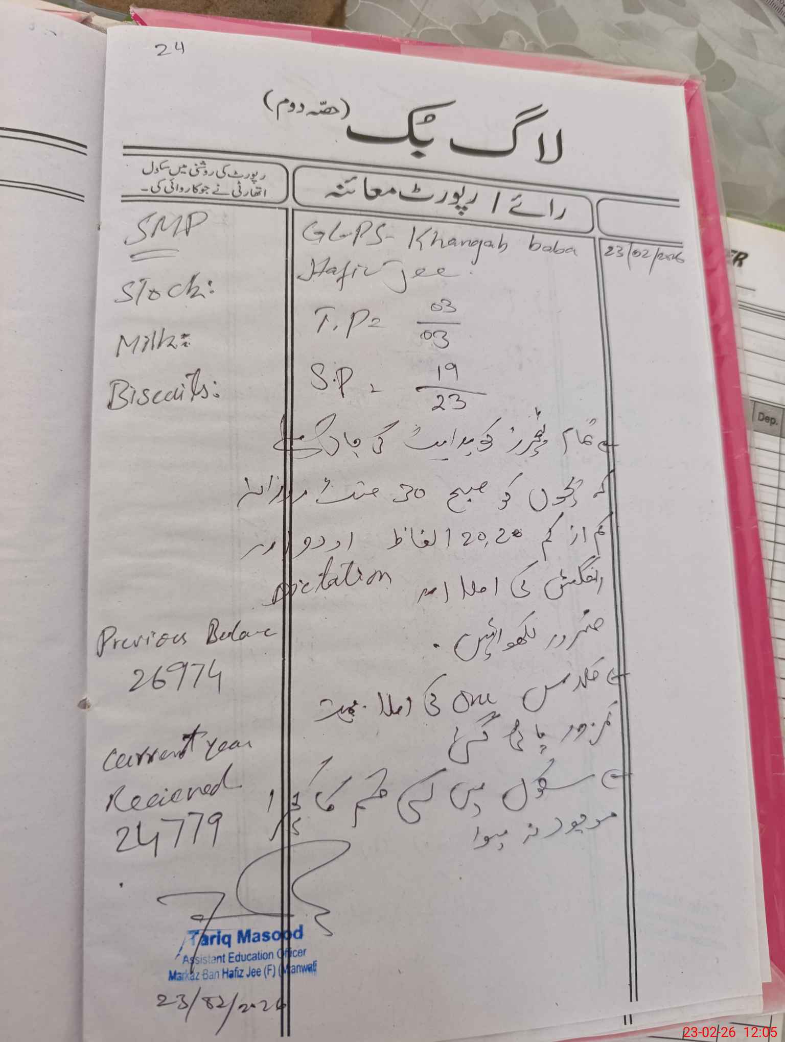 | Certified that this School was Inspected by the Undersigned MEA/DMO Today and the Information Stated Above is as Per Record. | |||||