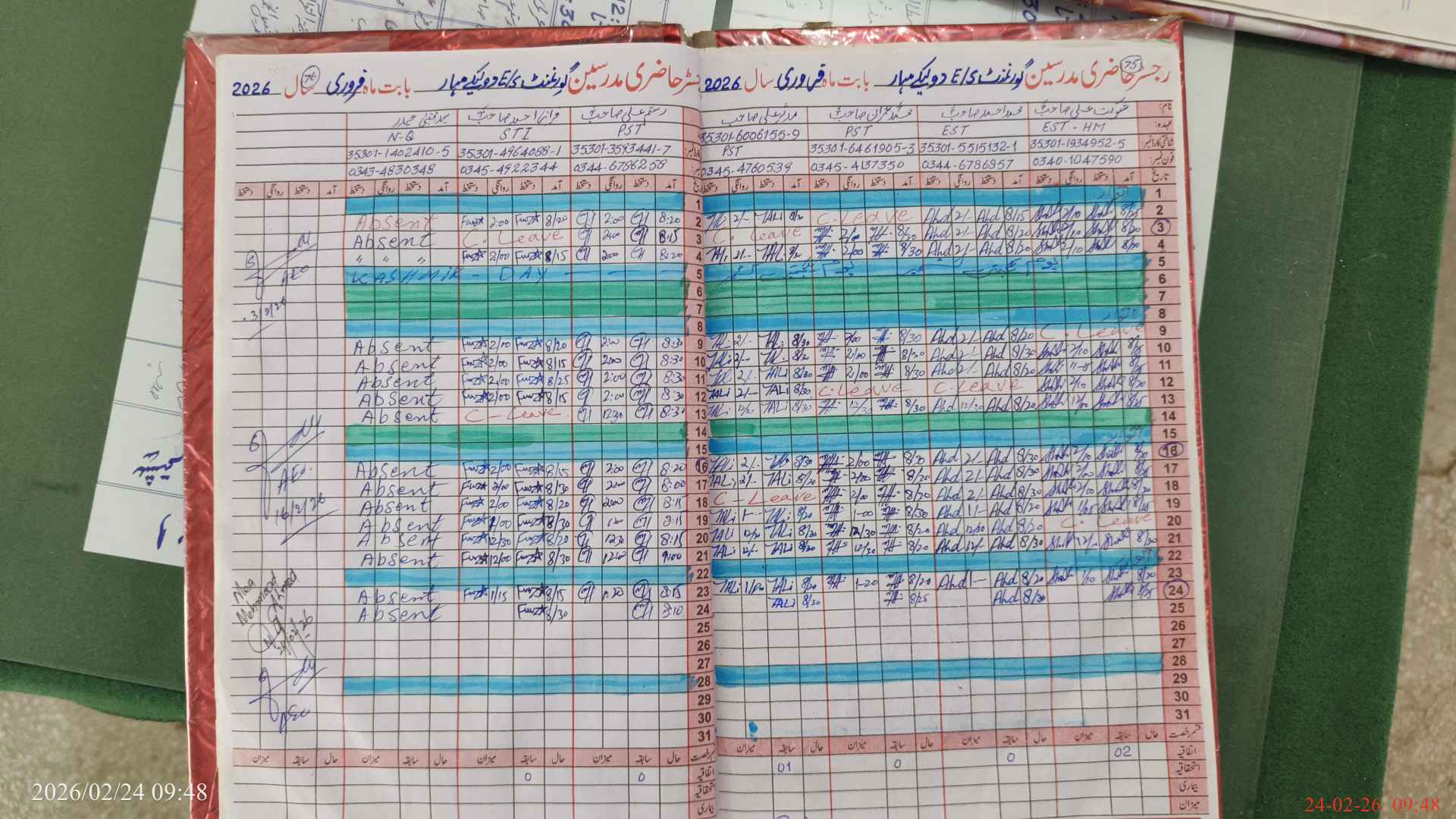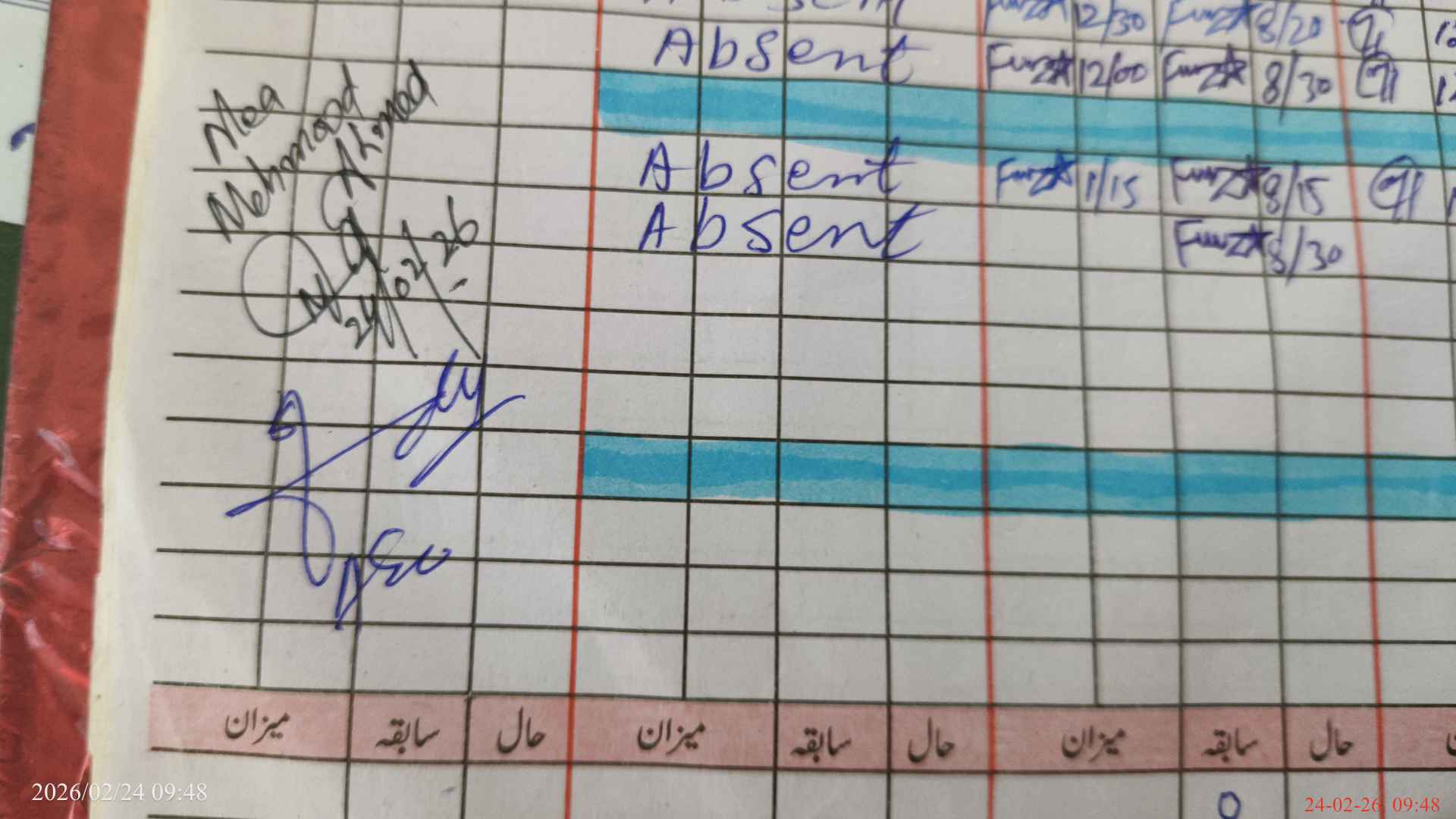 | 35**** | Sy**** Mu**** Ha**** | NAIB QASID | Regular | 0 | 0 | 30 | 0 | 0 | 0 | 0 | 0 | 0 | Absent (Un-Authorized) |