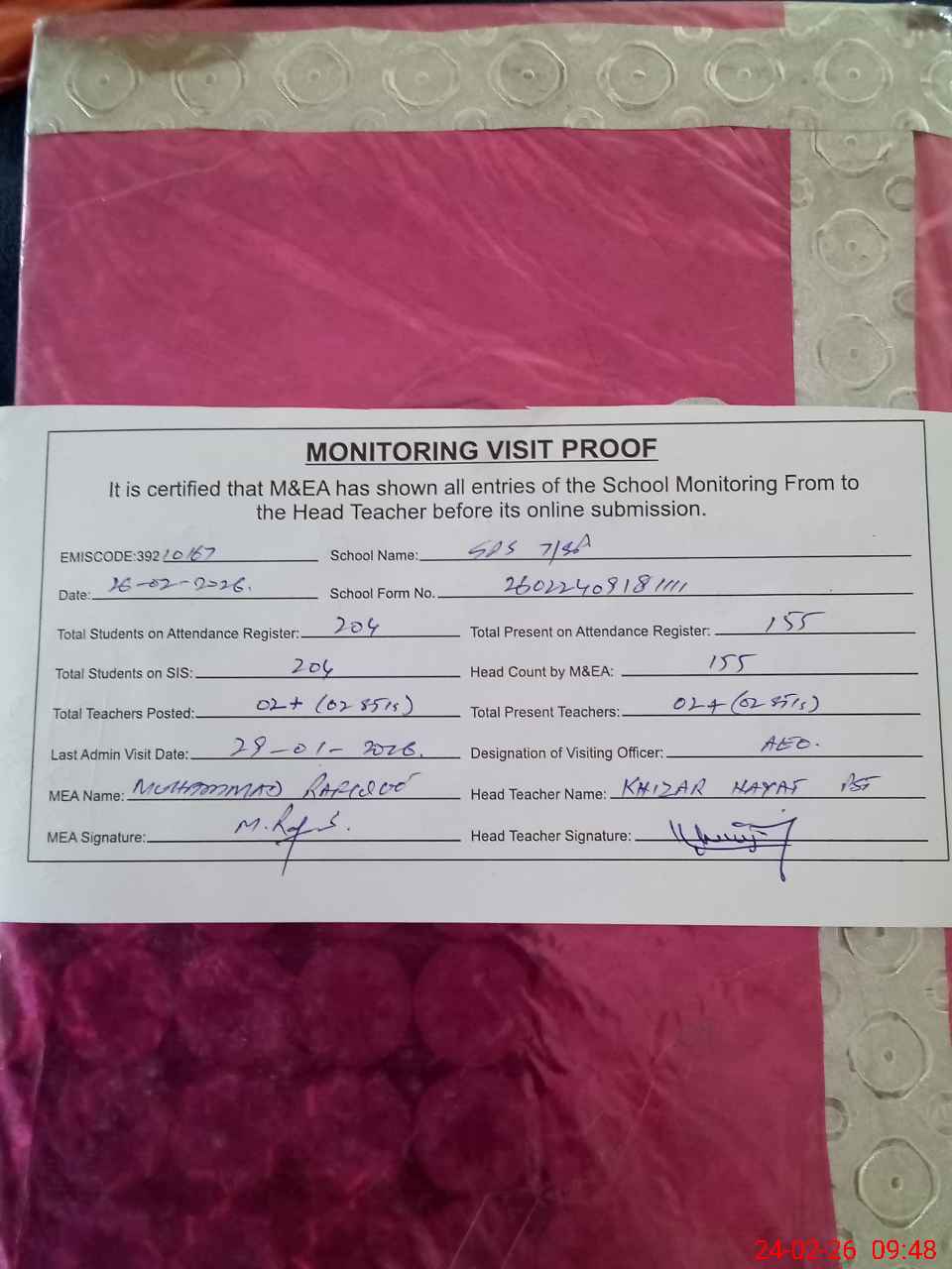 | EMIS Code: 39210167 | Name of School: GPS 7 SP PO MOLVI WALA PAKPATTAN | |||