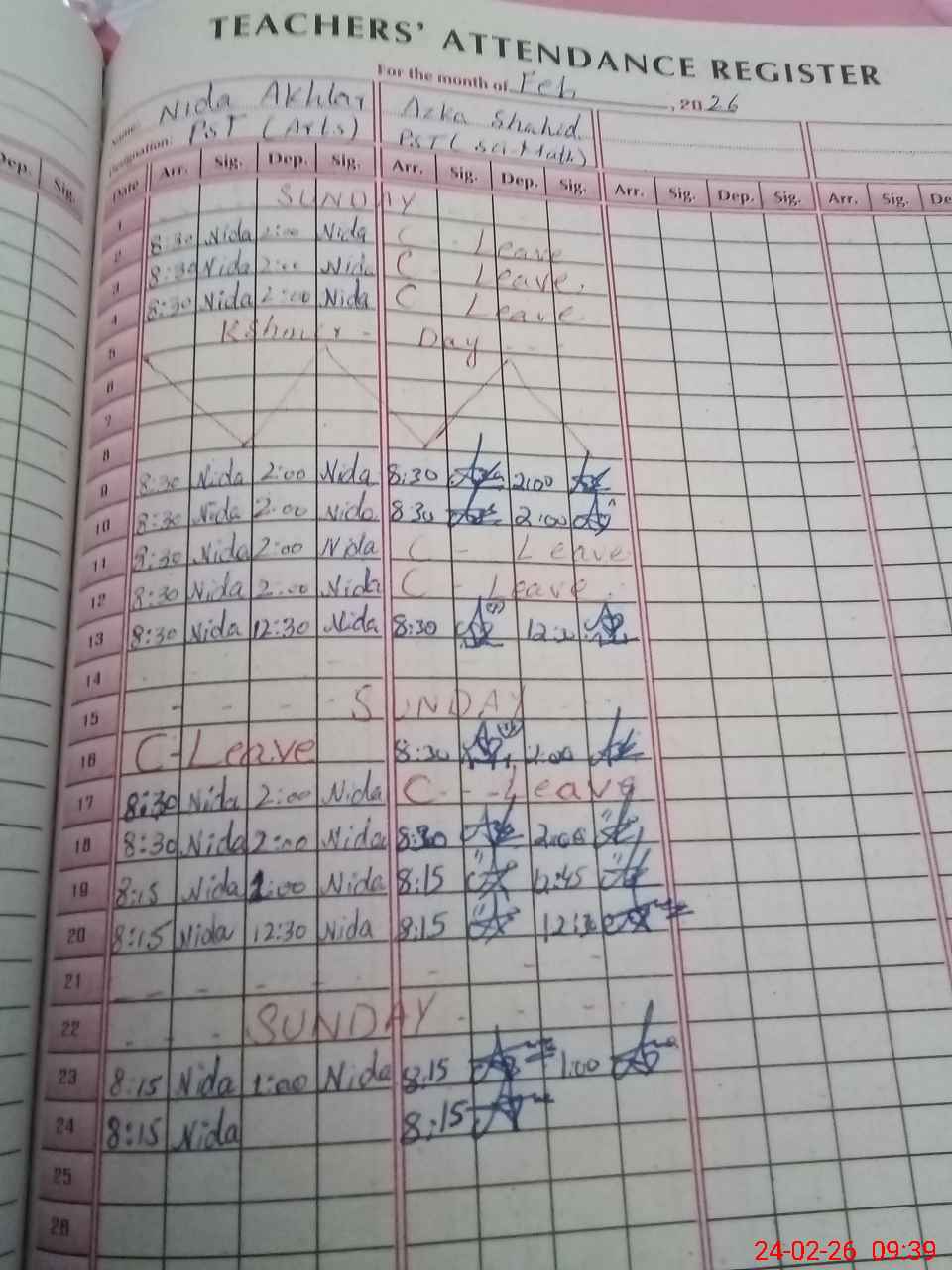 | CNIC | Full Name | Designation | R/C | Absence During Last Calender Month |
