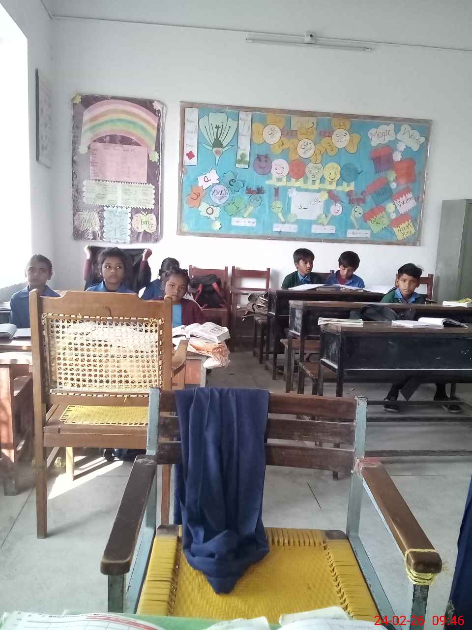 | Total no. of Classrooms: 2 No. of Classrooms Used for Teaching: 2 No. of Classrooms Storing Old Furniture, FTBs, etc: 0Comments if Any: Nil |