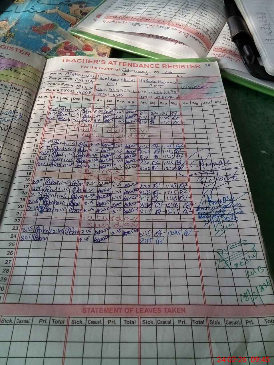 | Name: Af**** Na**** Designation: (School Headmaster's/Headmistress's) PST Phone/Cell Number: 03**** |