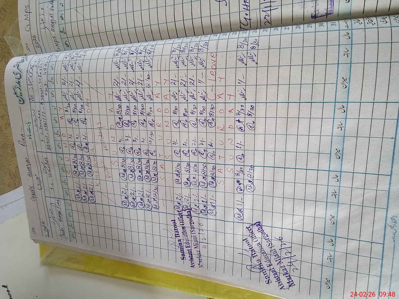 | Leave | Duty | Absent | Maternity | Medical | Ex- Pak |