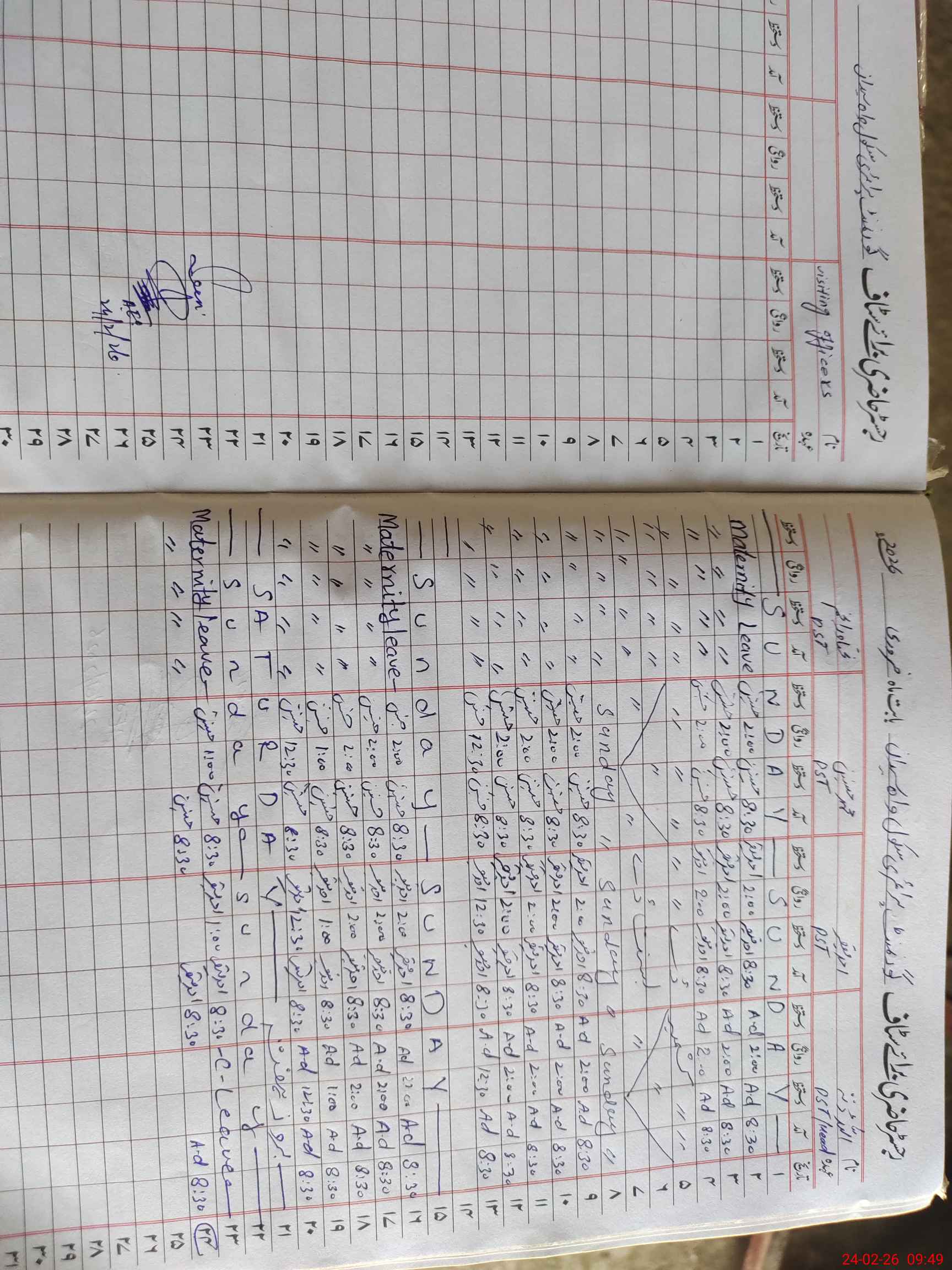 | Leave | Duty | Absent | Maternity | Medical | Ex- Pak |