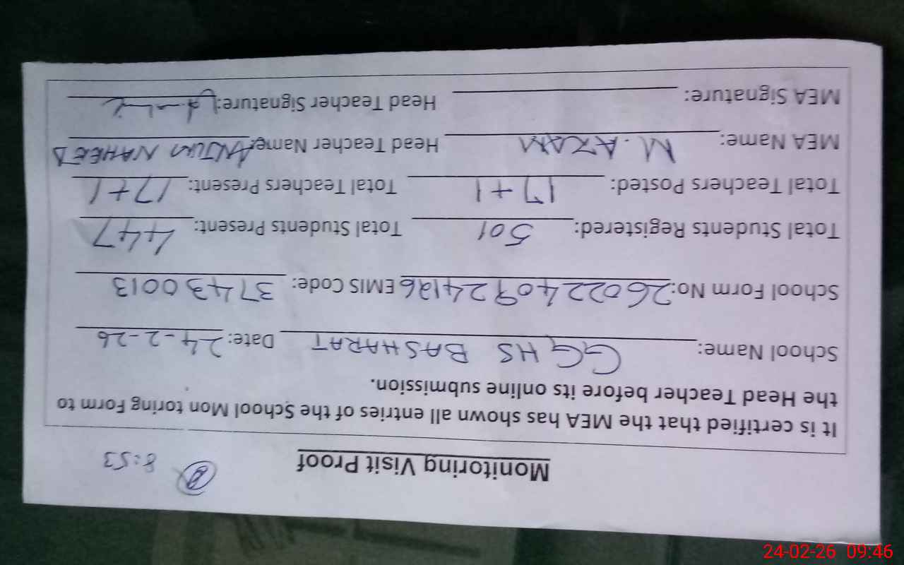 | EMIS Code: 37430013 | Name of School: GGHS BASHARAT | |||