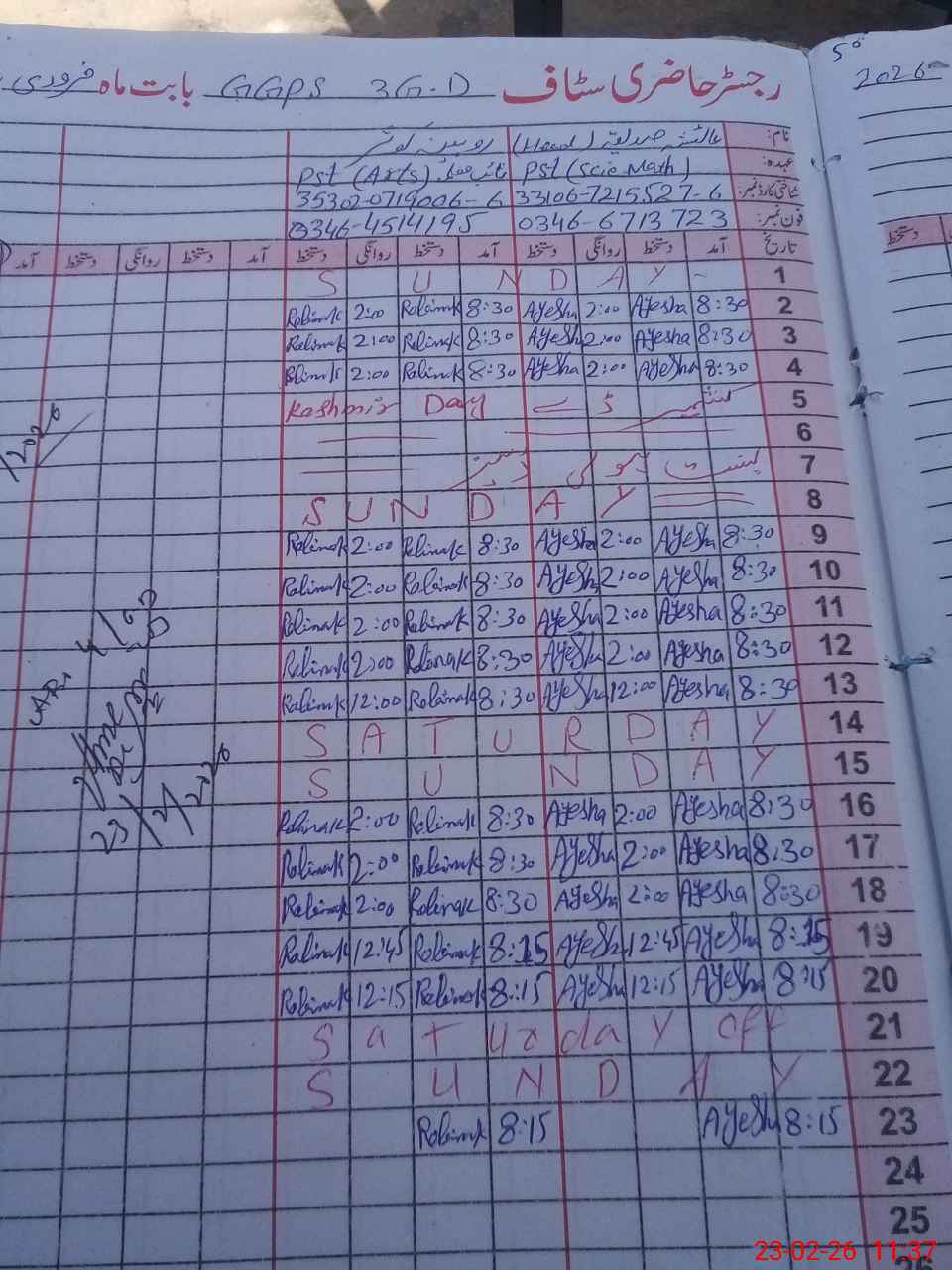 | Name: AY**** SA**** Designation: (School Headmaster's/Headmistress's) PST Phone/Cell Number: 03**** |