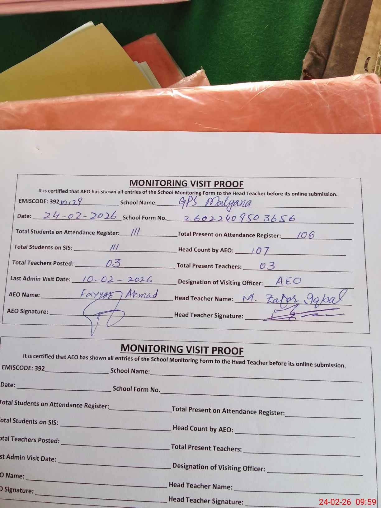 | Certified that this School was Inspected by the Undersigned MEA/DMO Today and the Information Stated Above is as Per Record. | |||||