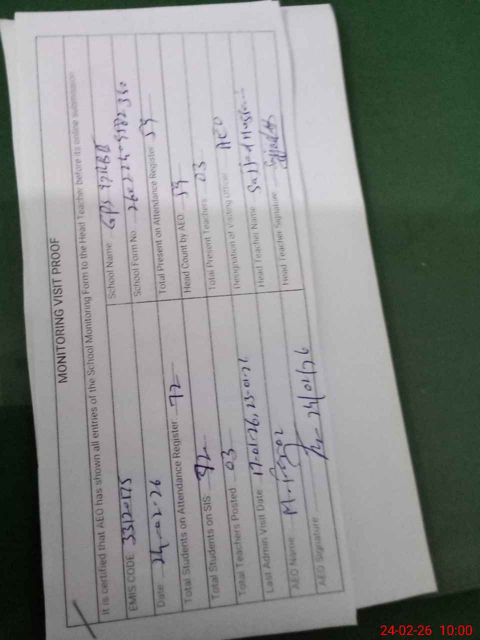 | Certified that this School was Inspected by the Undersigned MEA/DMO Today and the Information Stated Above is as Per Record. | |||||