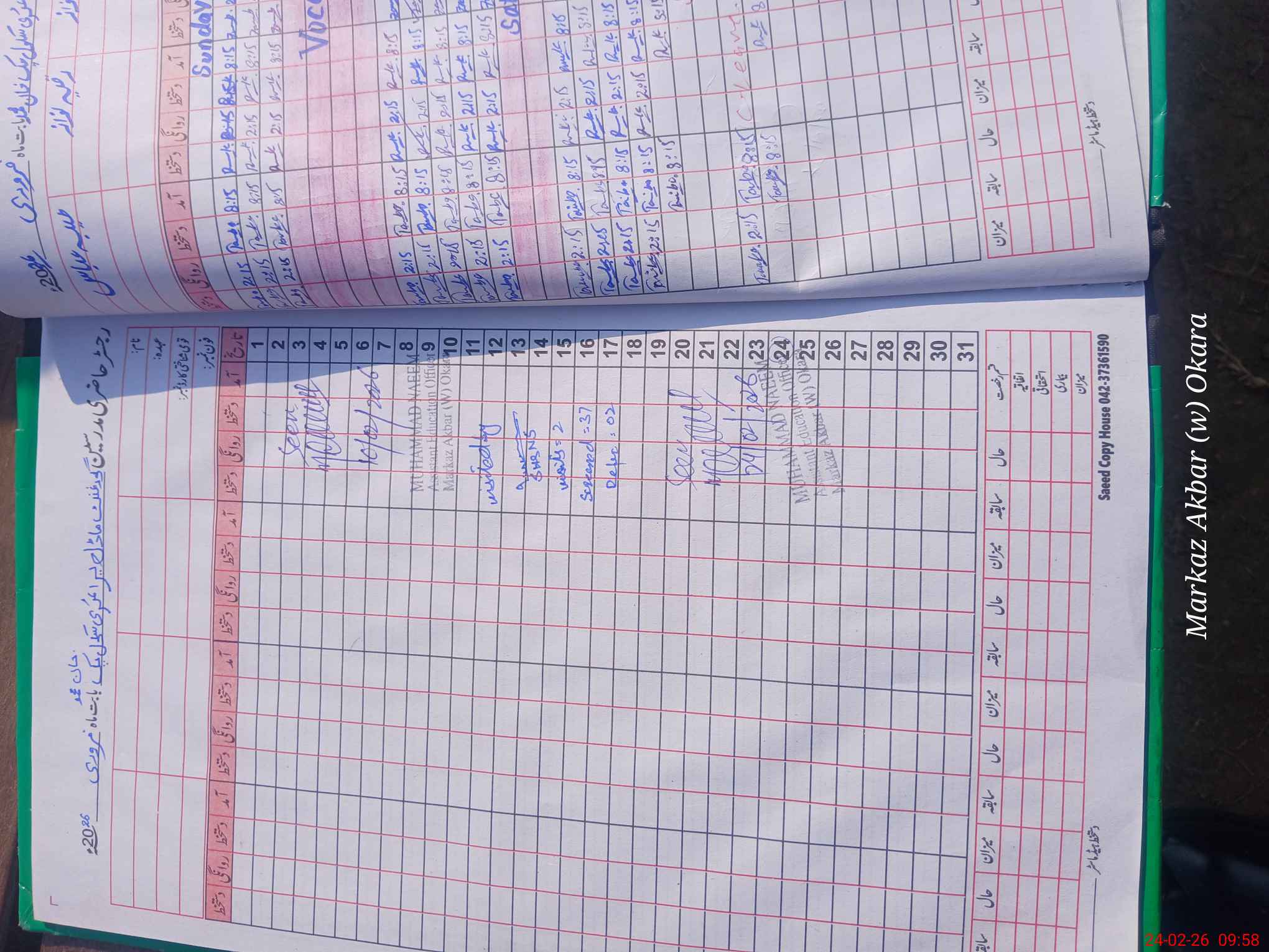 | CNIC | Full Name | Designation | R/C | Absence During Last Calender Month |